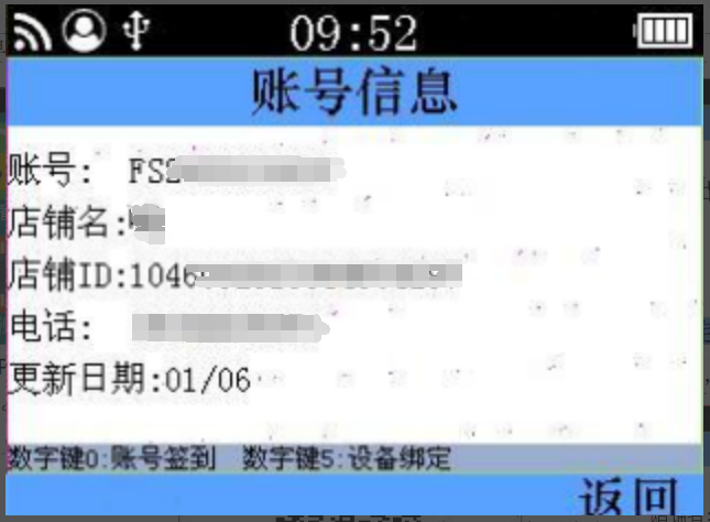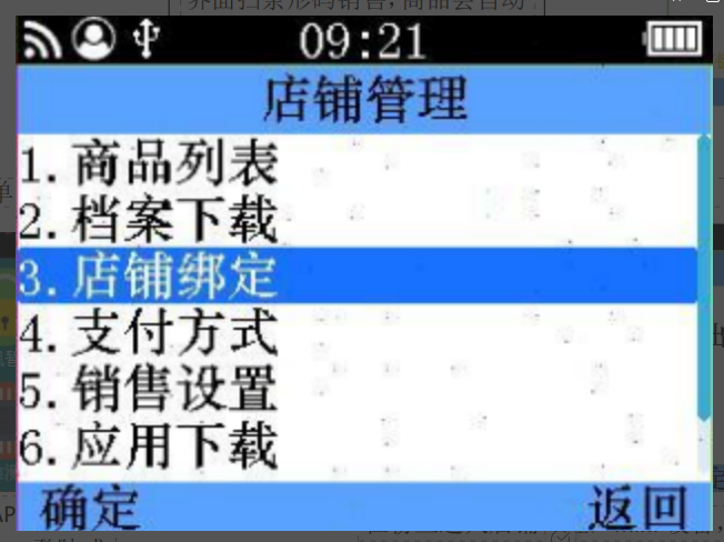2, 按【确定】键进入【店铺管理】界面,按【上翻】【下翻】选择【店铺绑定】