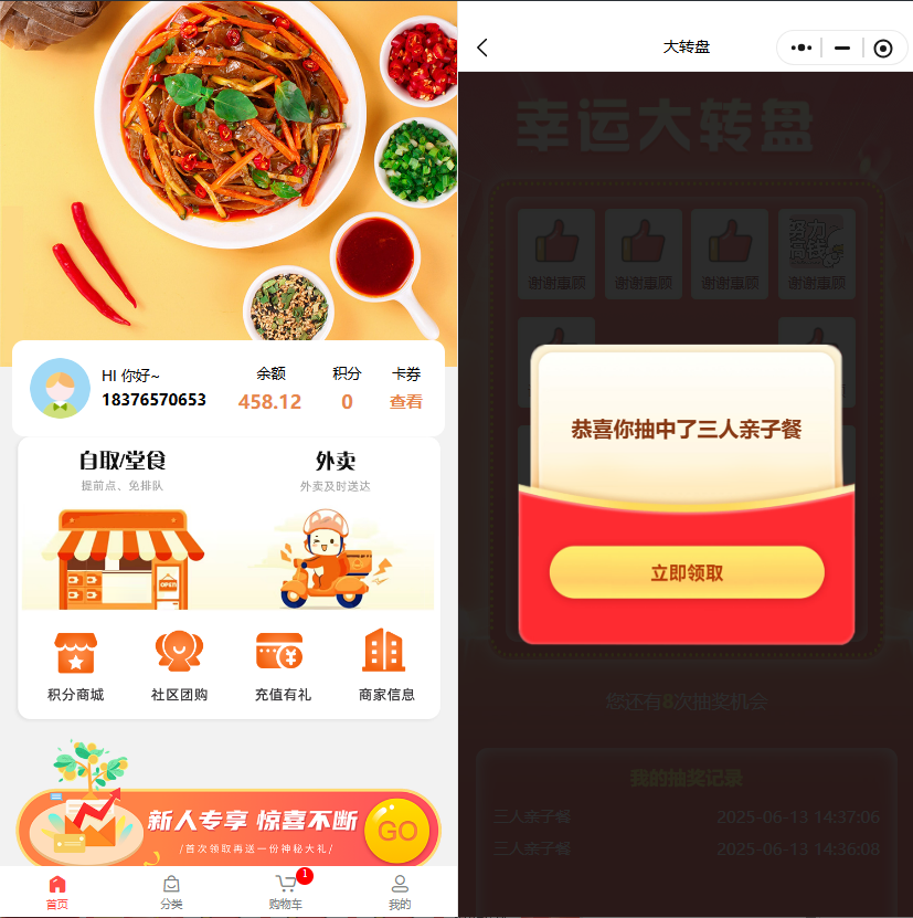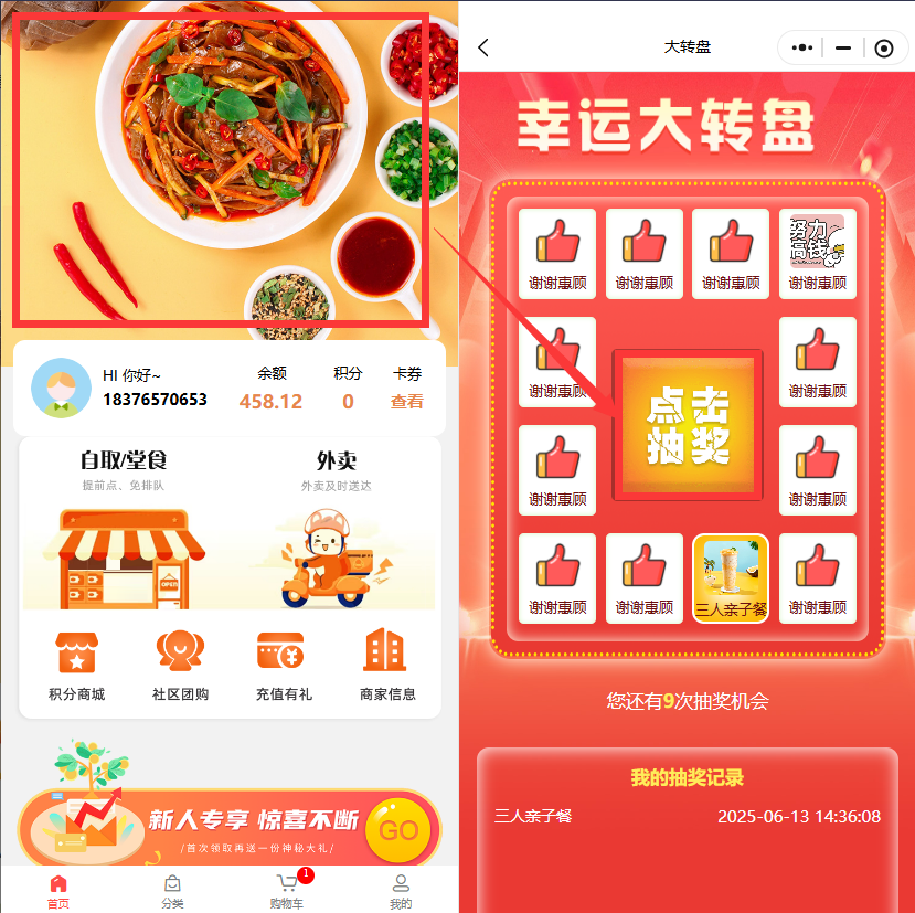 13、自动调中奖品:如果用户抽中了已经没有数量的商品,则自动指向中奖概率最高的有数量的奖品上