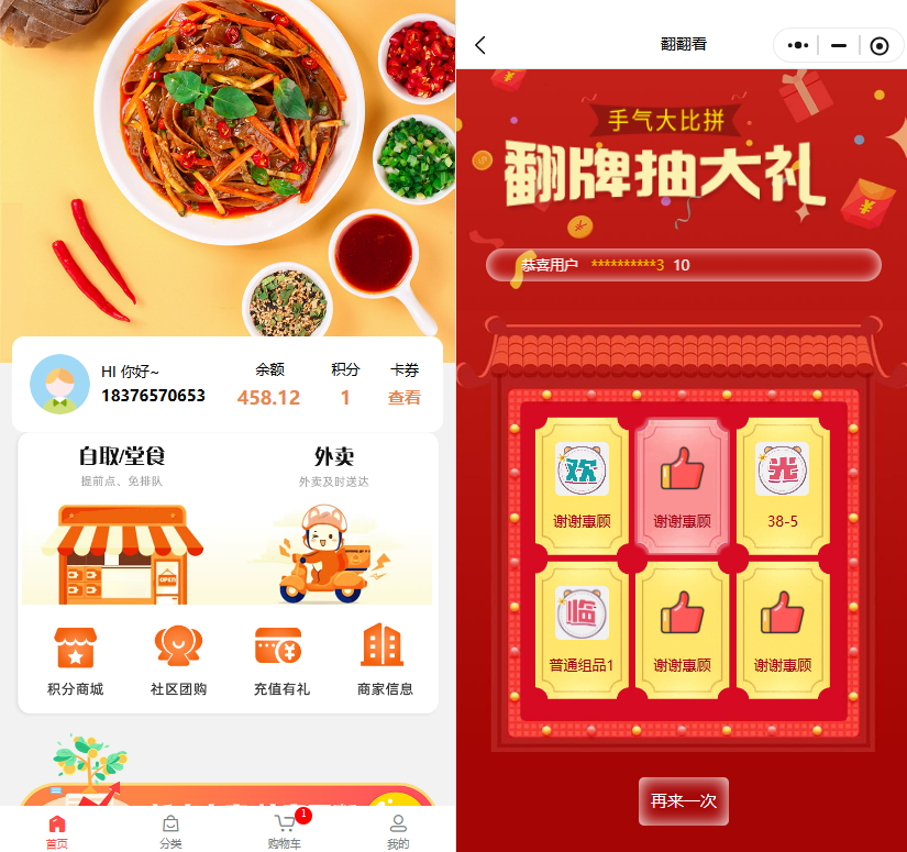 中奖奖品包含:积分、会员通用余额、优惠券、购物卡、次卡、商品、谢谢惠顾(注:谢谢惠顾在中奖奖品内必须包含)