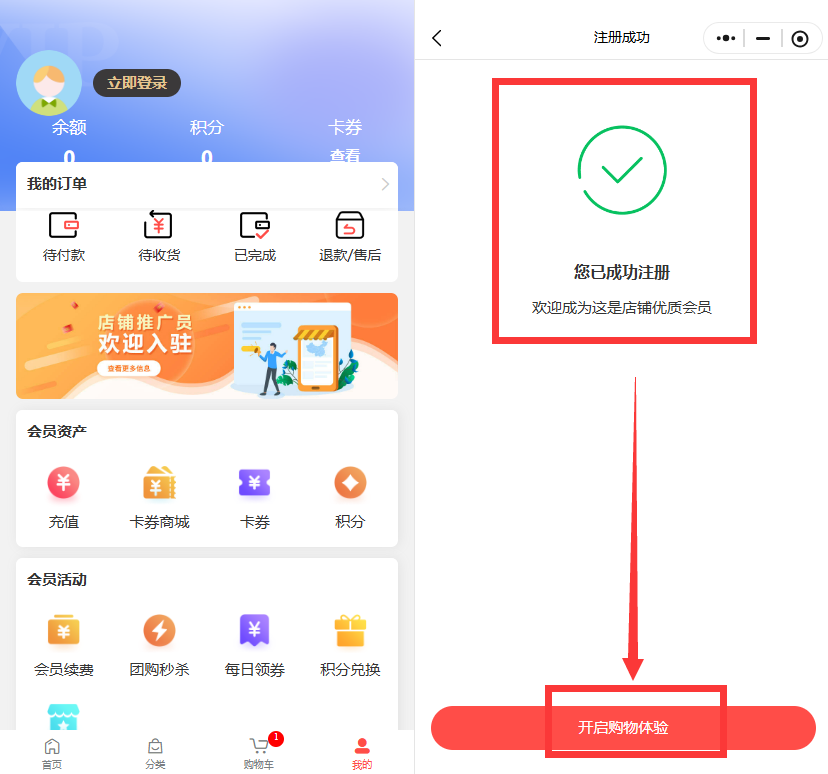 注册成功,开启购物体验
