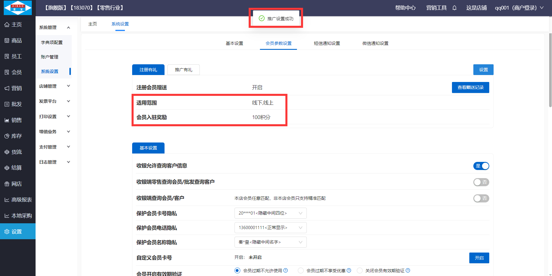 路径:【设置】-【系统管理】-【系统设置】-【会员参数设置】-【注册有礼】