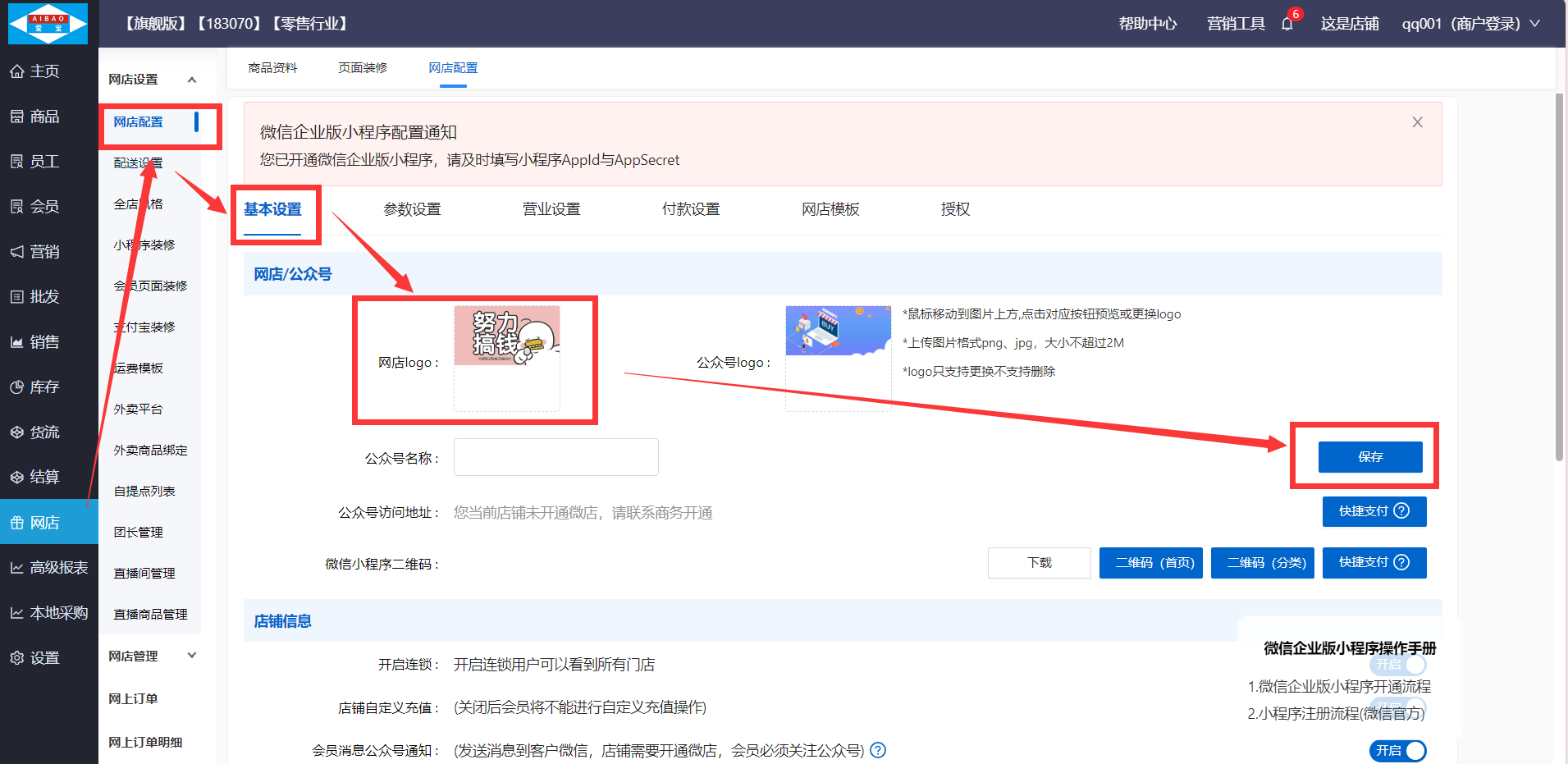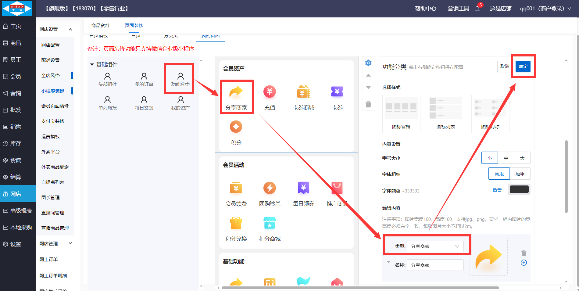 前提条件:小程序我的页面,存在分享商家功能,若无,小程序装修增加分享商家功能后保存发布小程序