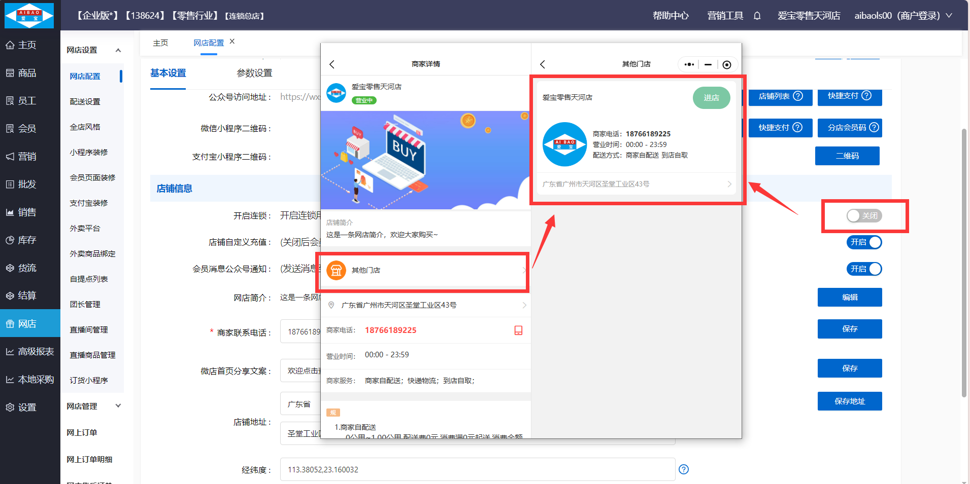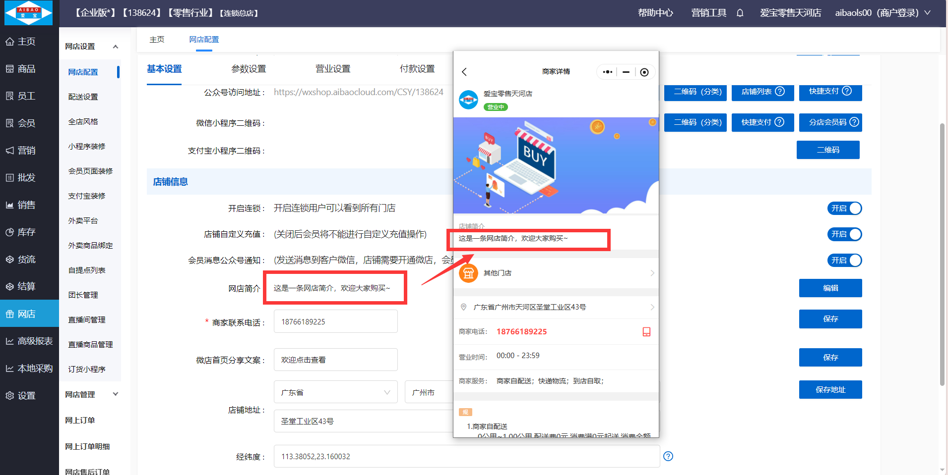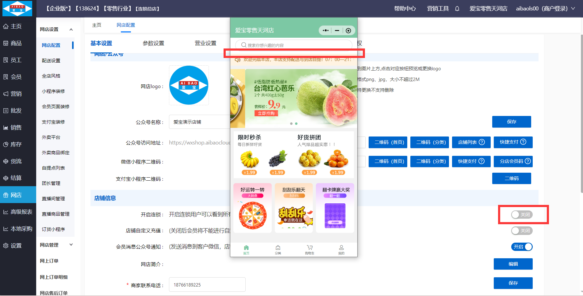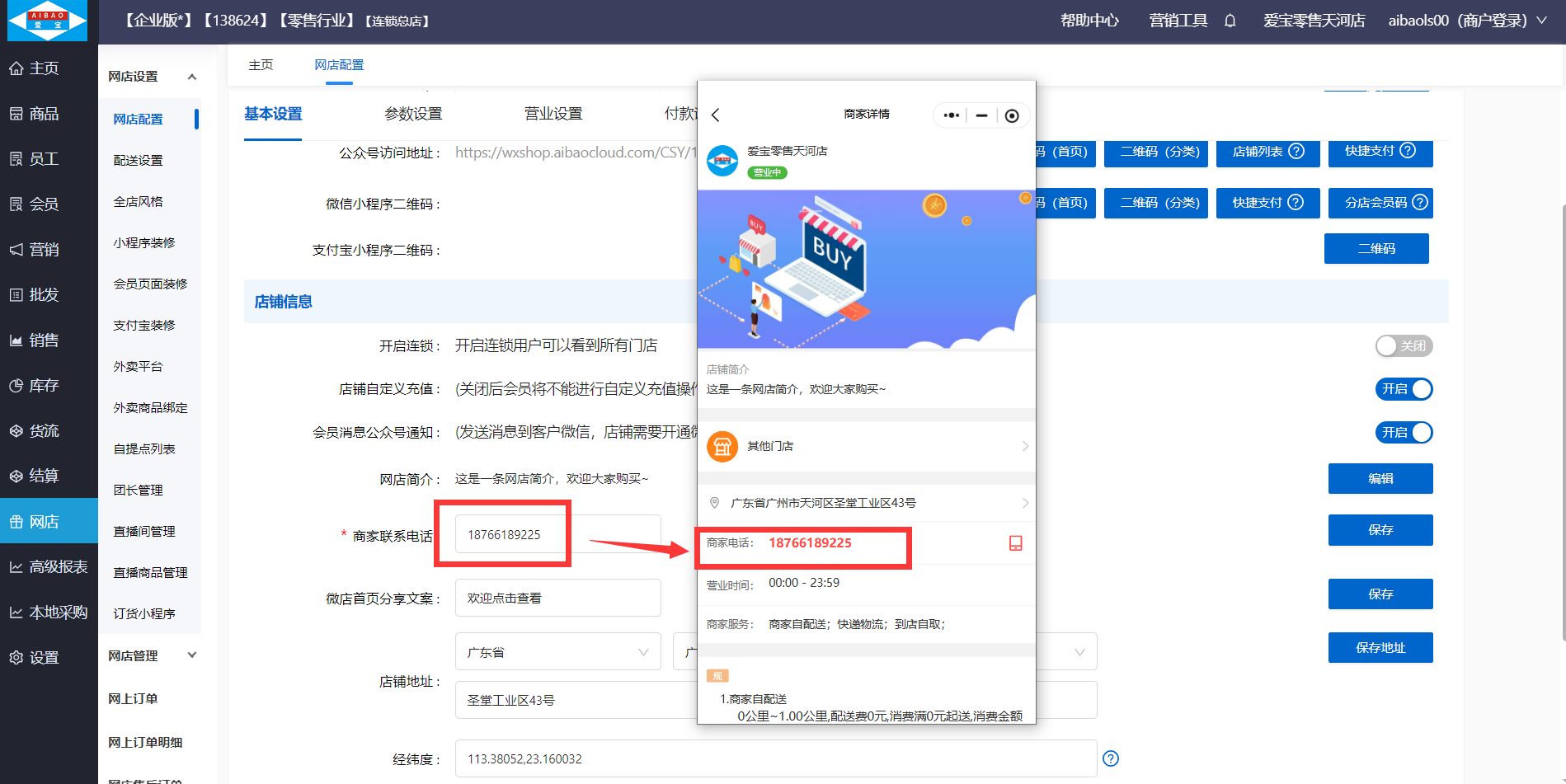 路径:【网店】-【网店设置】-【网店配置】-【基本设置】-店铺信息