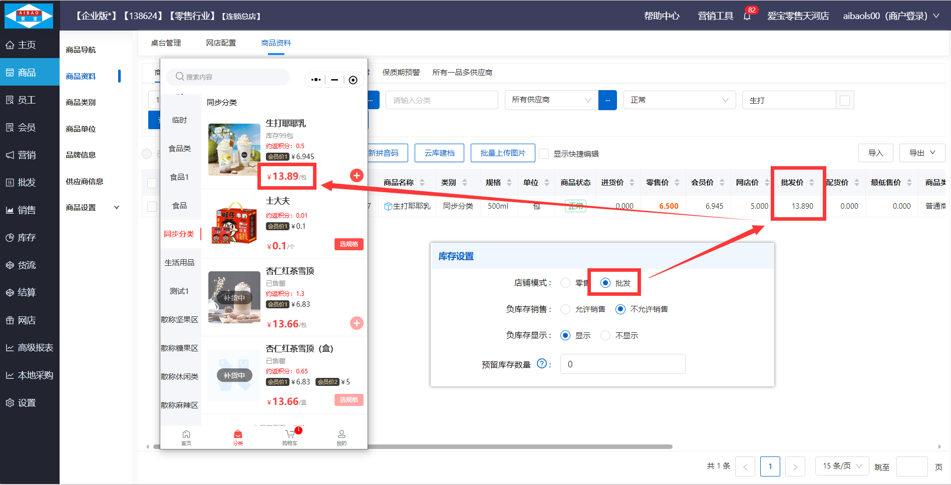 开启负库存不允许销售,可选择配置负库存显示和预留库存数量