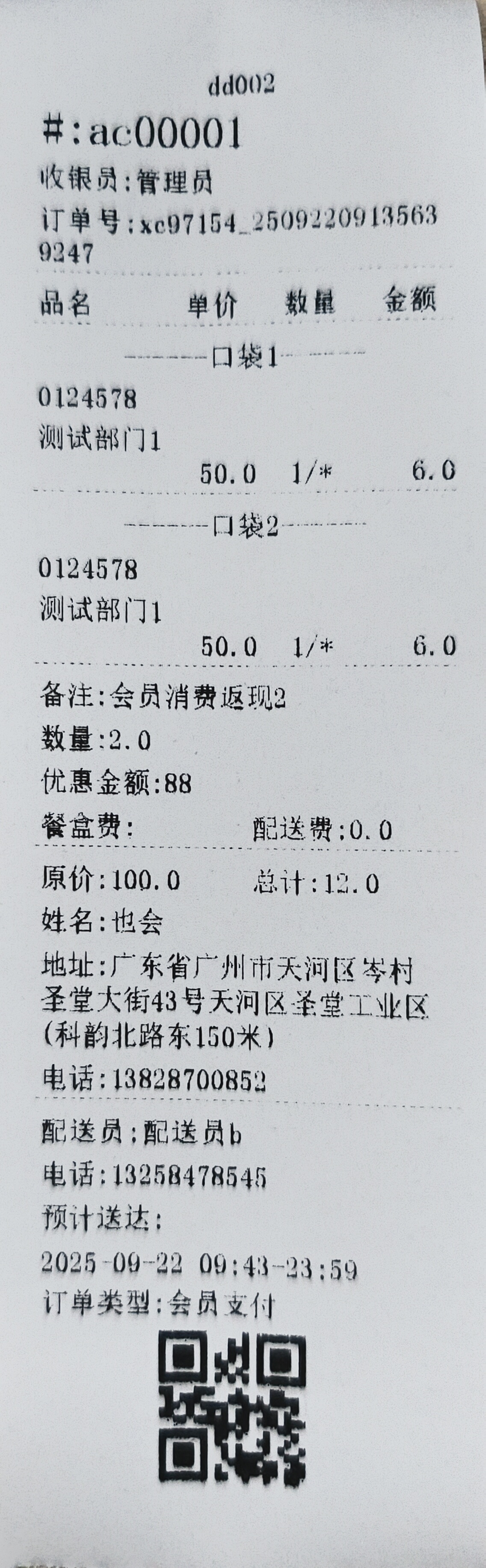 5.收银端接单打印会显示对应口袋的商品数据,打印小票如(图5)。