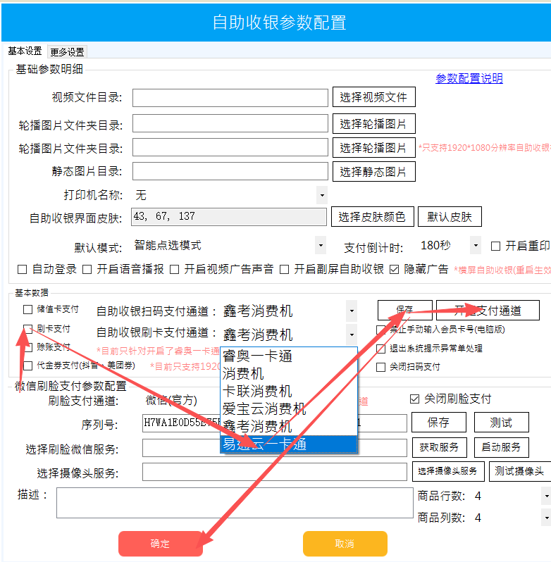3.2.关于自助机(1920*1080,其它分辨率不支持)开启一卡通支付,如图: