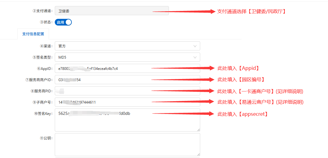 3.1.关于【一卡通商户号】和【易通云商户号】填入详细说明:【一卡通商户号】和【易通云商户号】2个值选择其中一个填入即可.