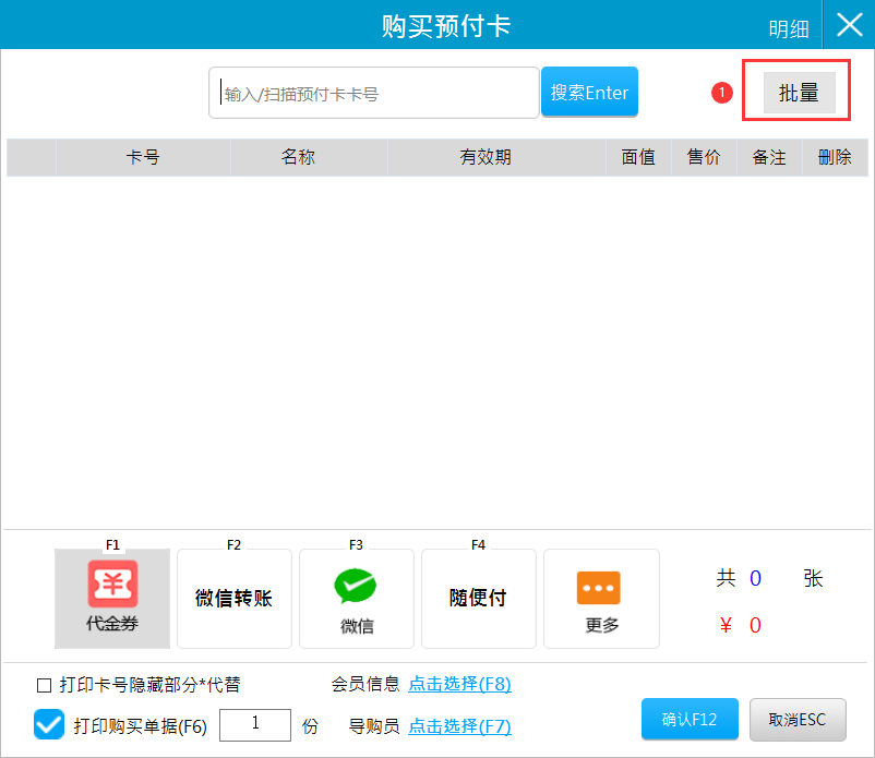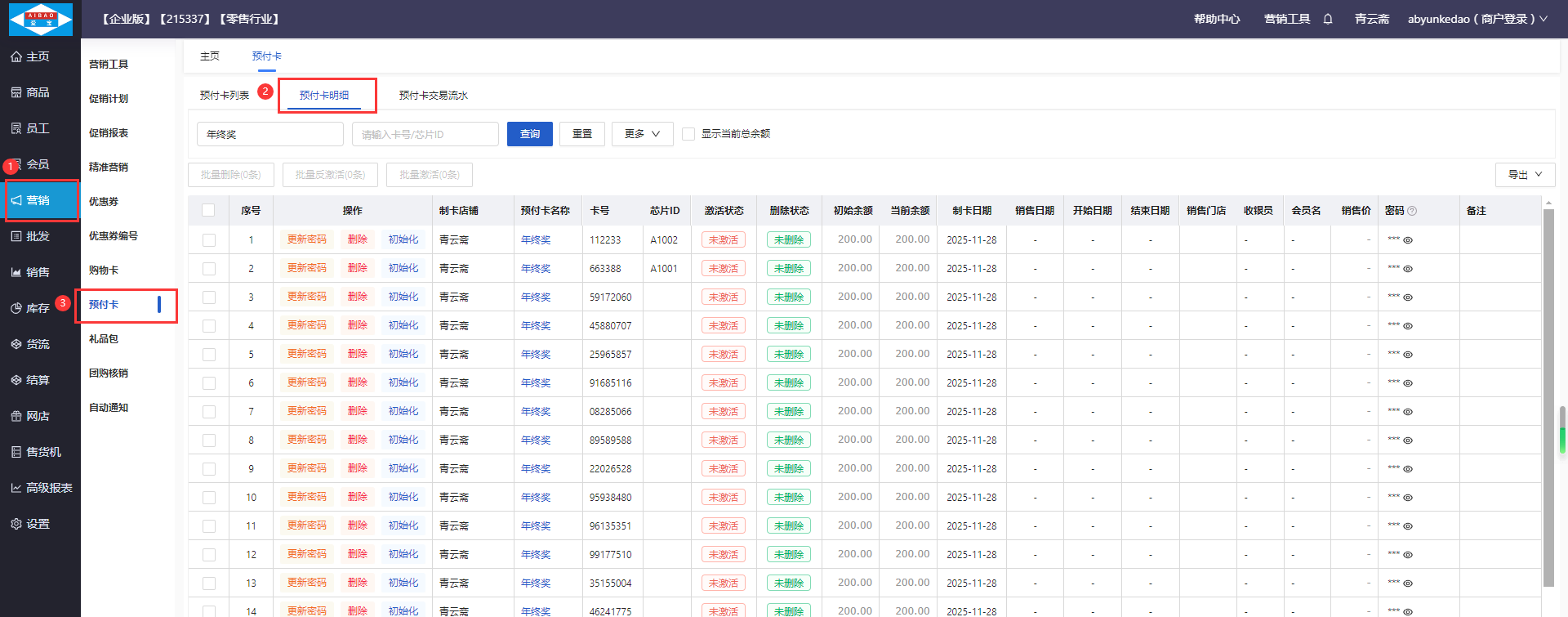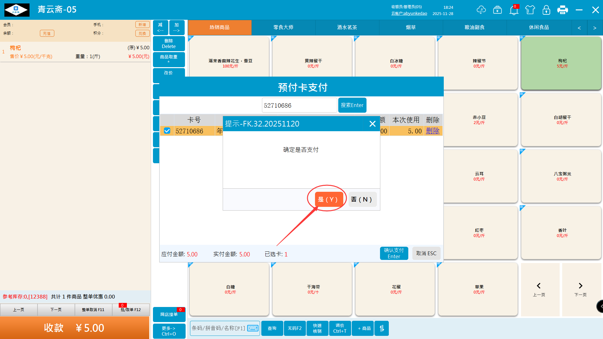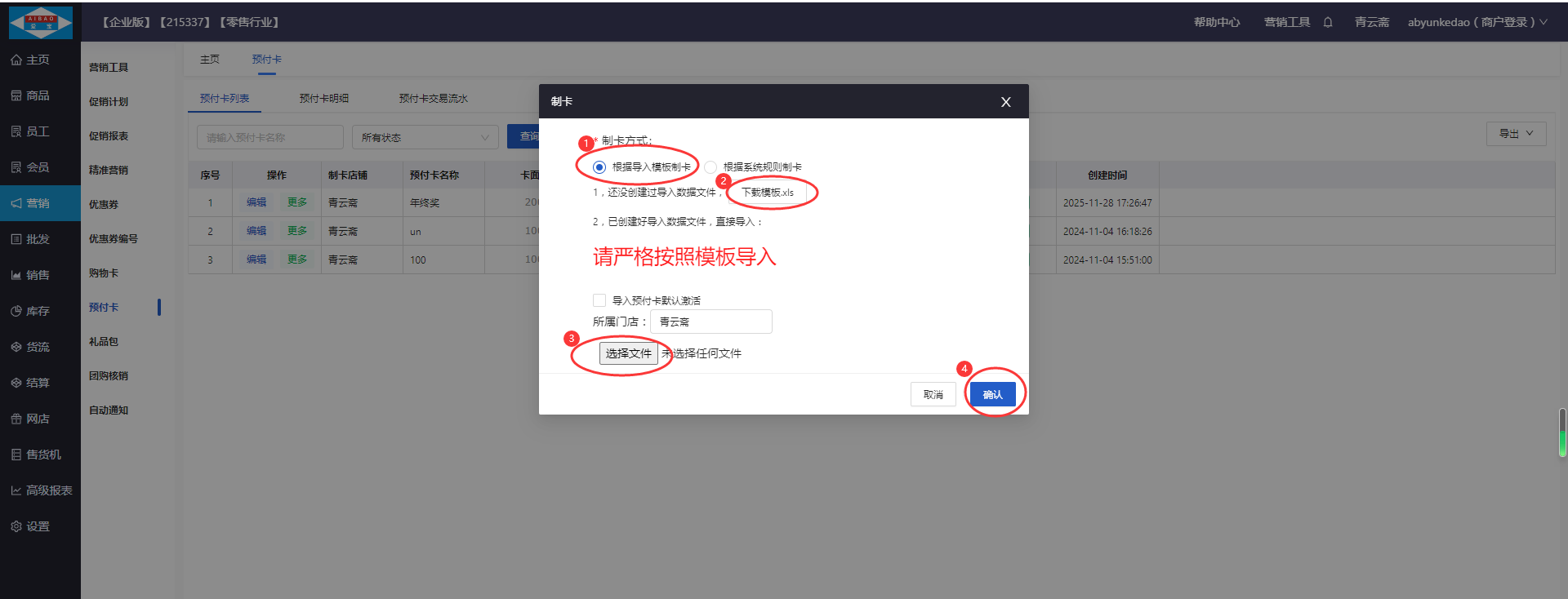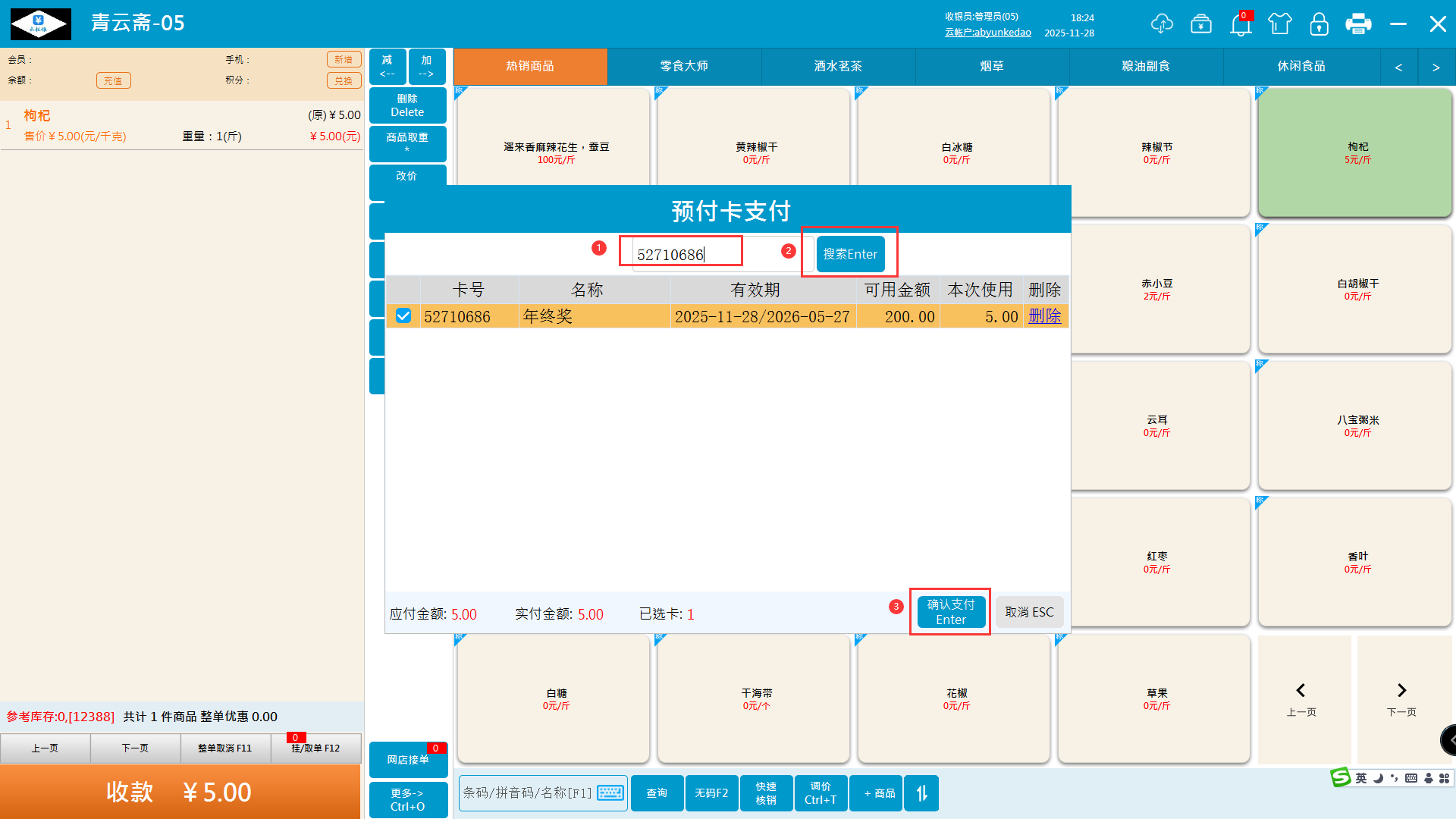 1.云后台->【设置】->【店铺管理】->【支付方式】->【云库建档】,启用预付卡付款方式。