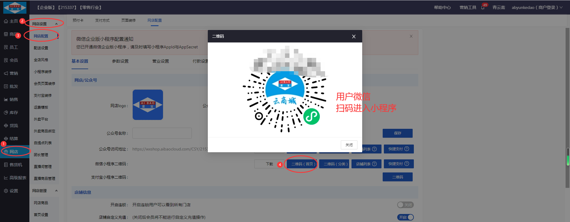 ①扫【微信小程序二维码】或搜索商家的小程序名进入小程序。