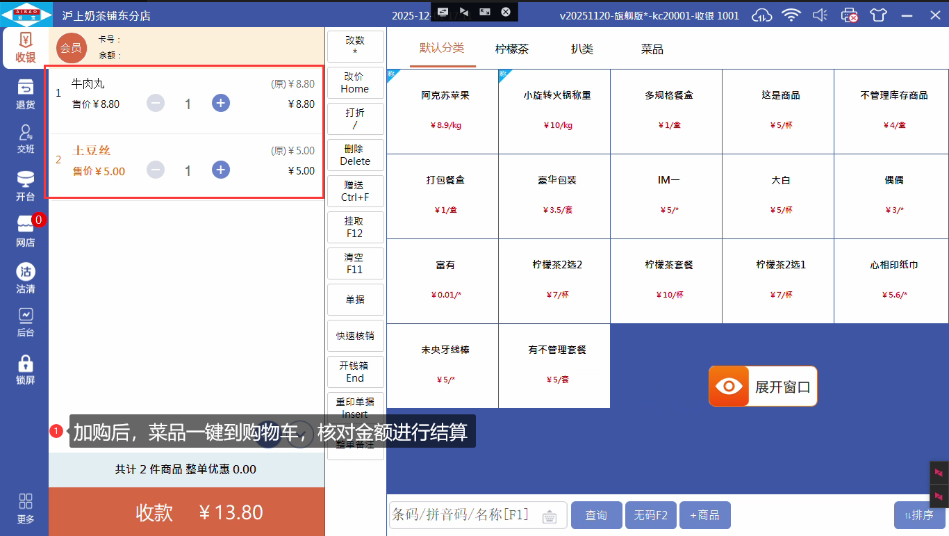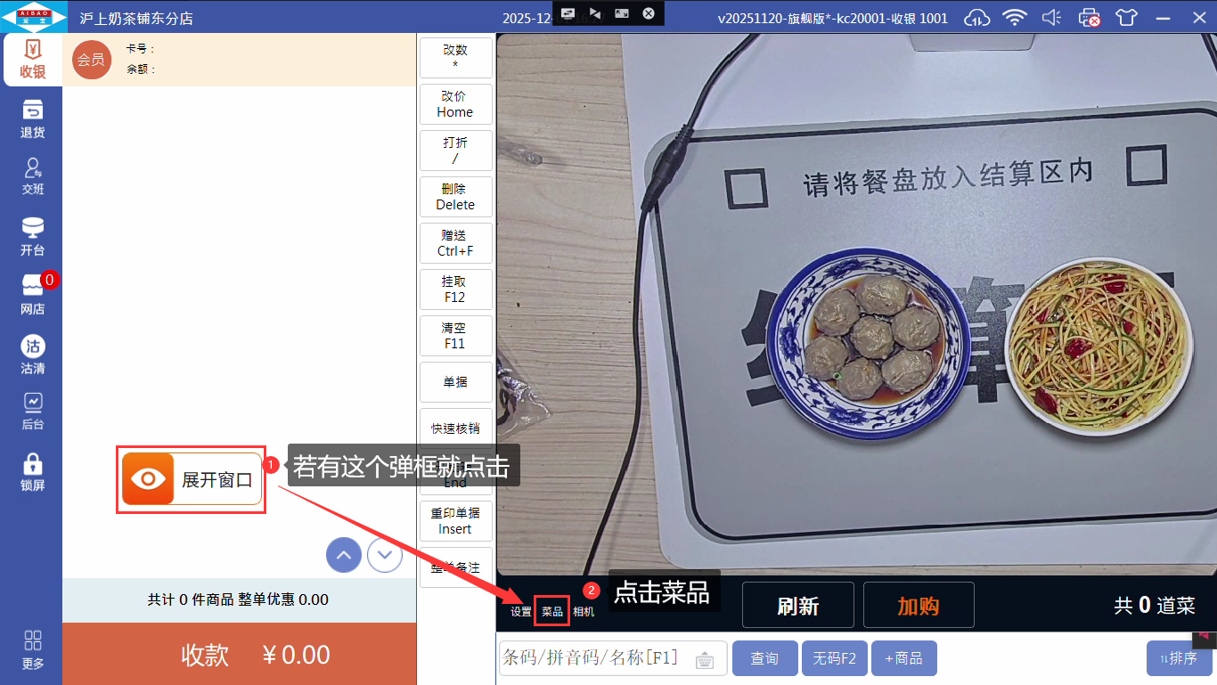 注意:需先启动食方AI社餐插件再启动云收银软件,不然同步菜品会失败。