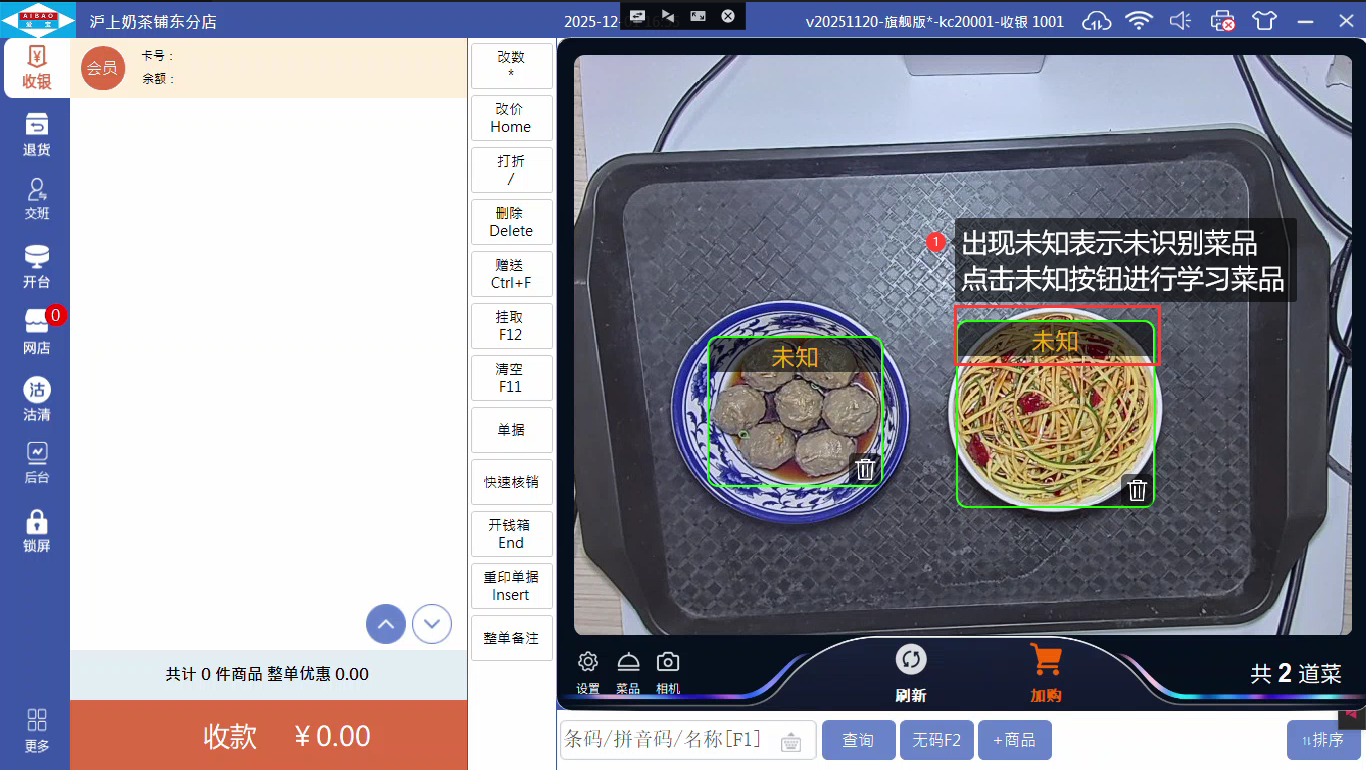 1-将菜品放置识别区域,出现未知菜品时,点击未知按钮。