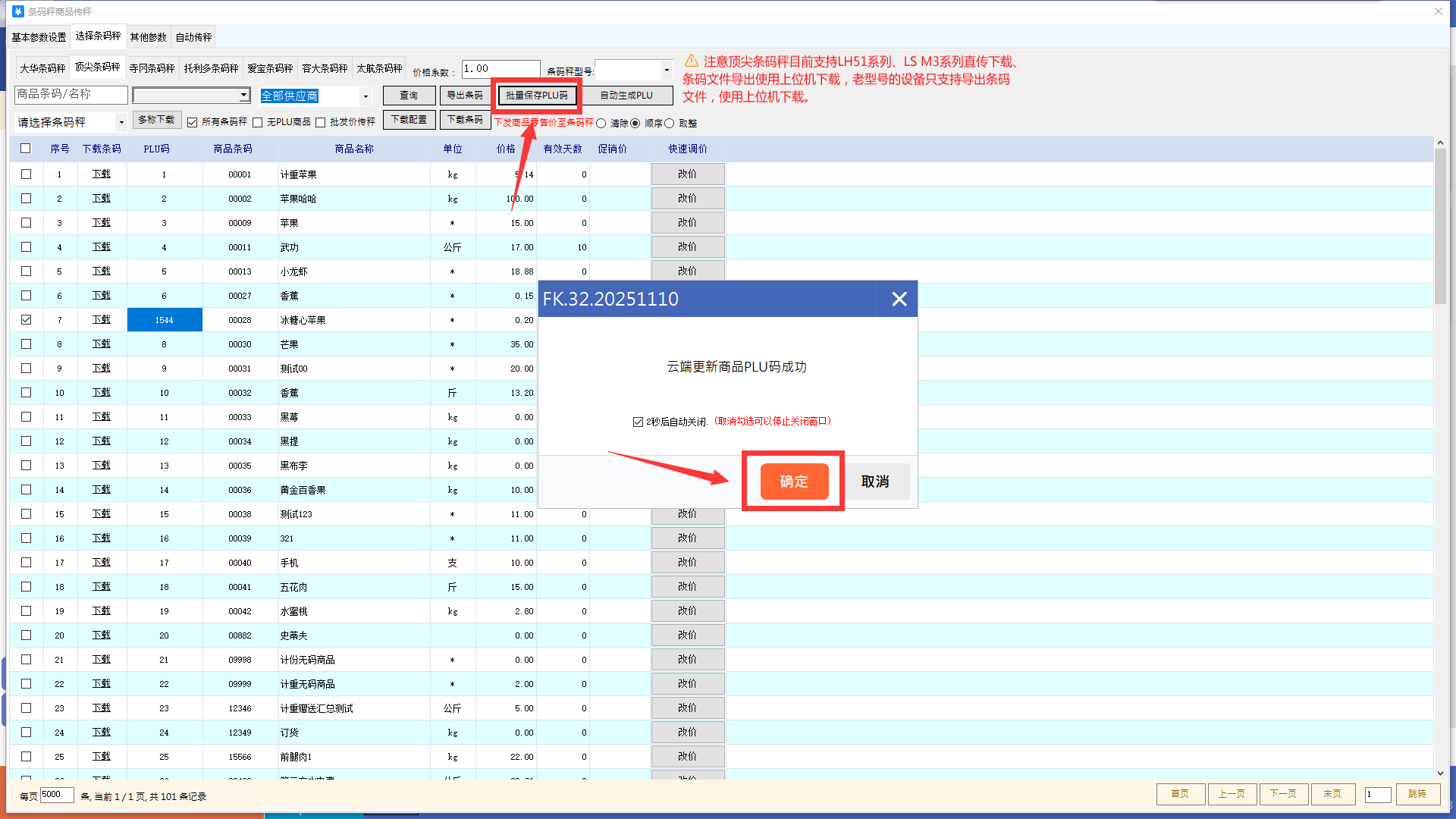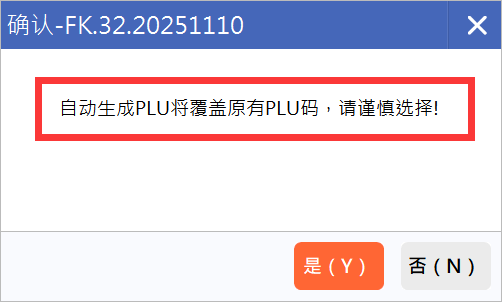 确认自动生成plu将覆盖原有plu码后,点击批量保存plu码