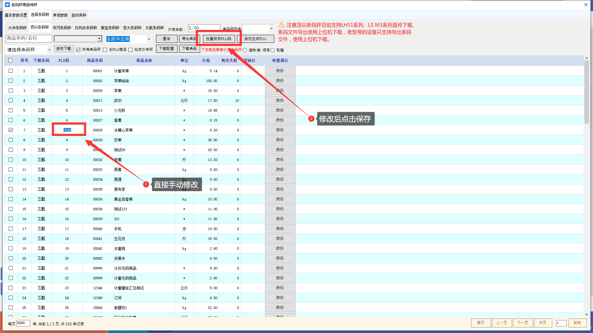 手动修改plu码,然后批量保存plu码