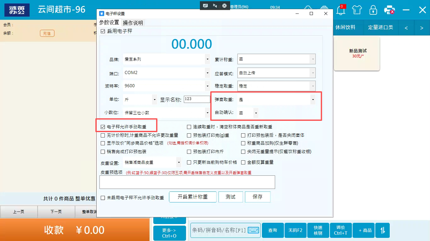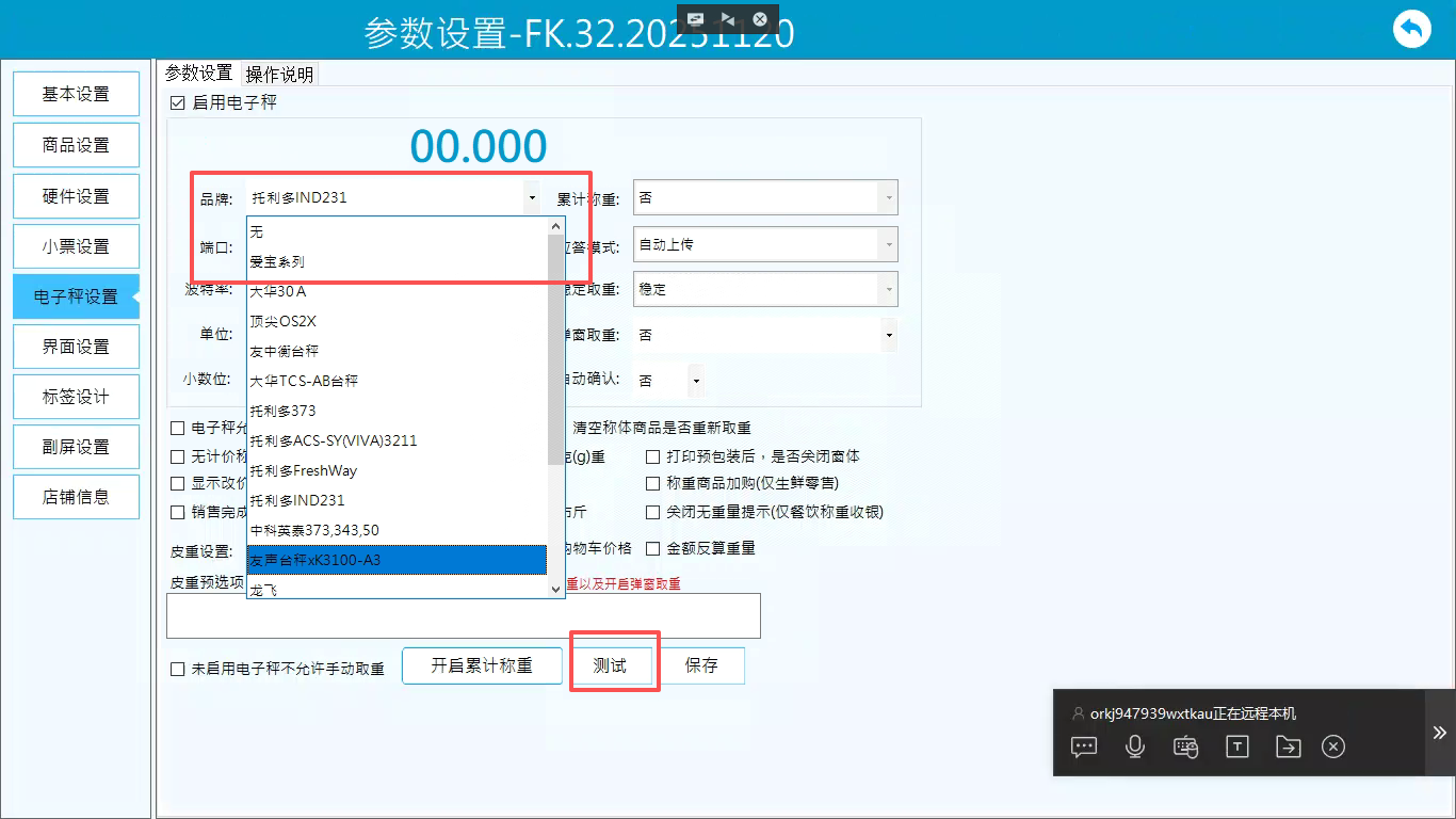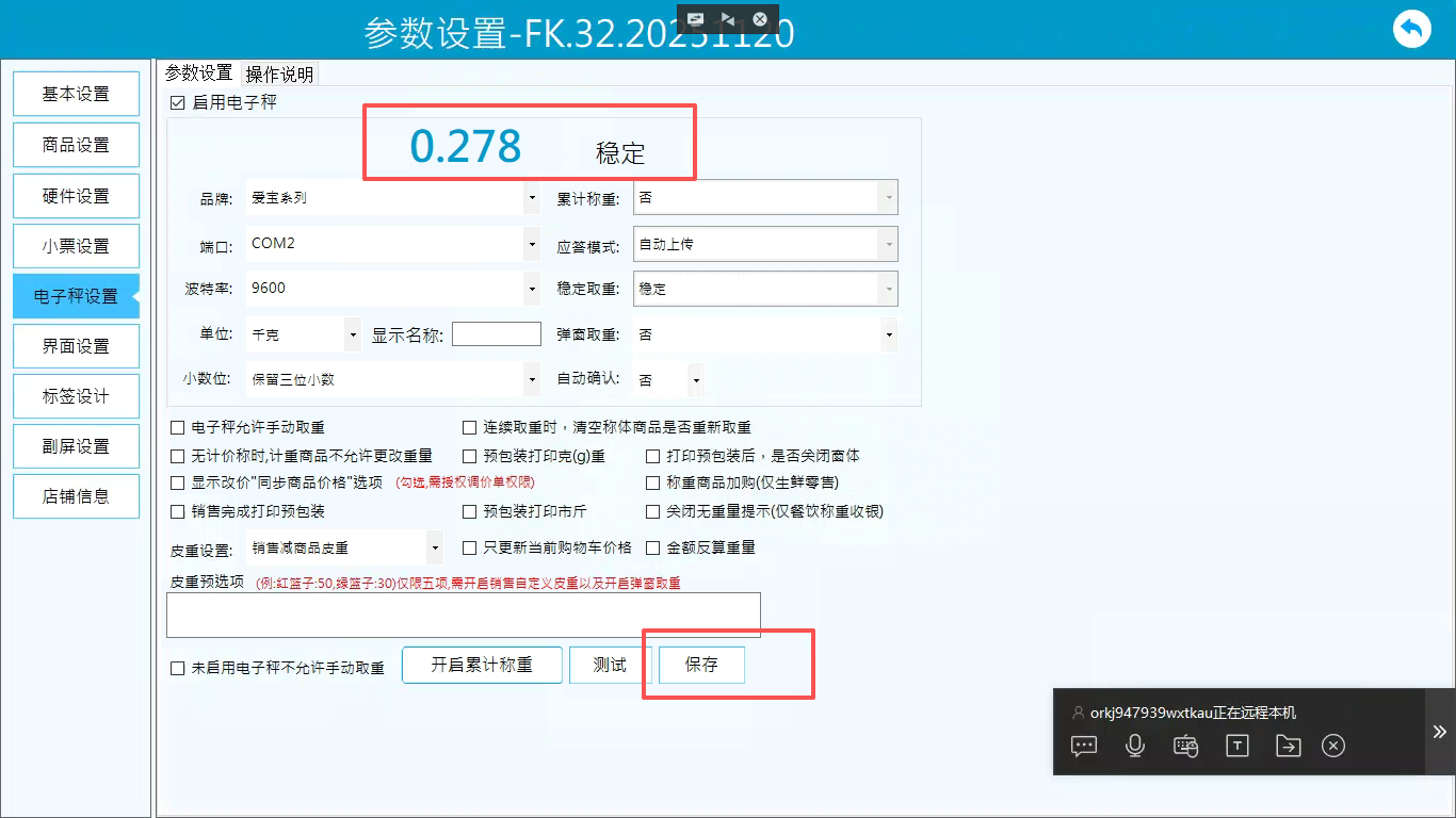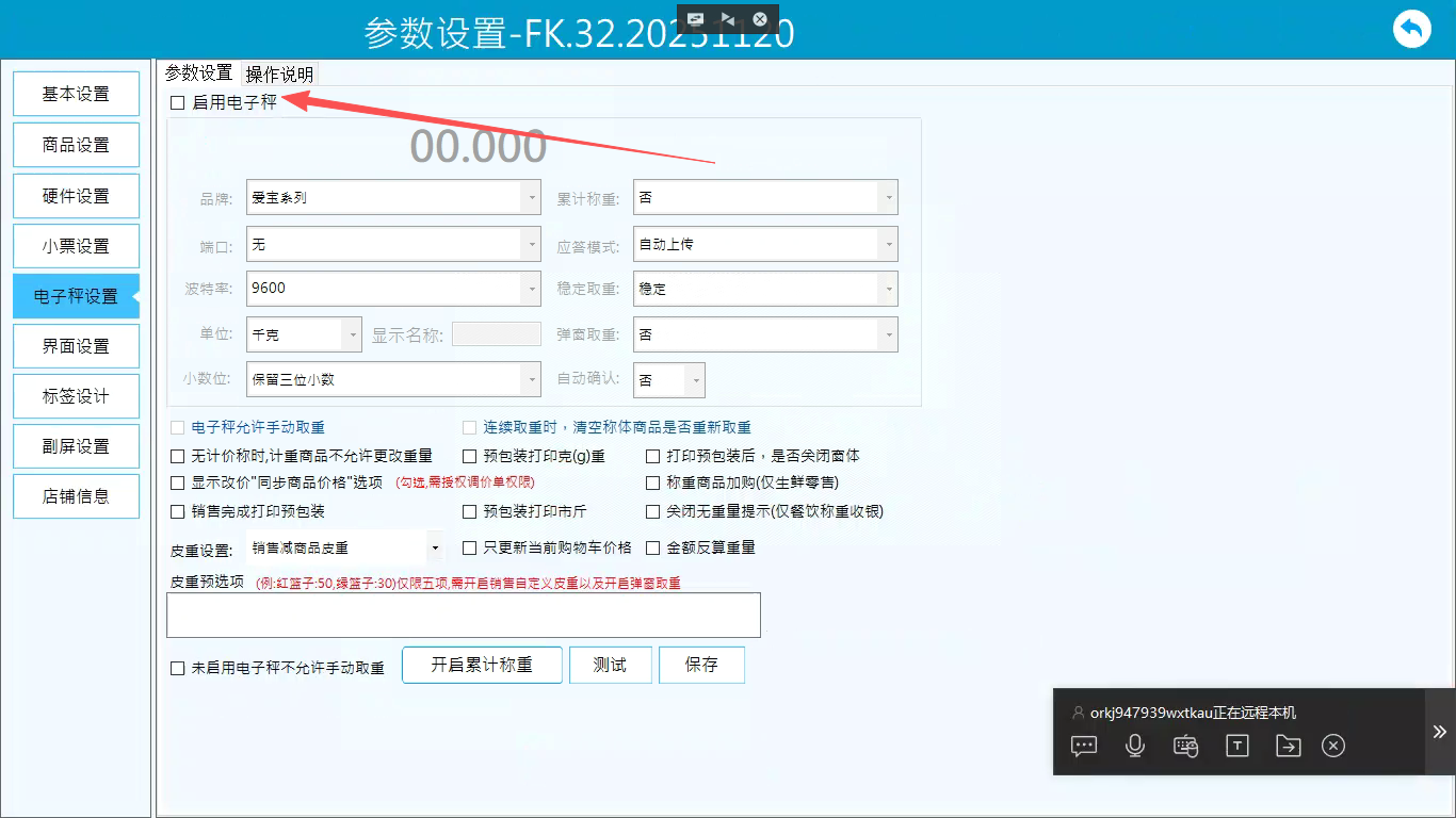 2.1 其他→参数设置→电子称设置→启用电子秤勾上