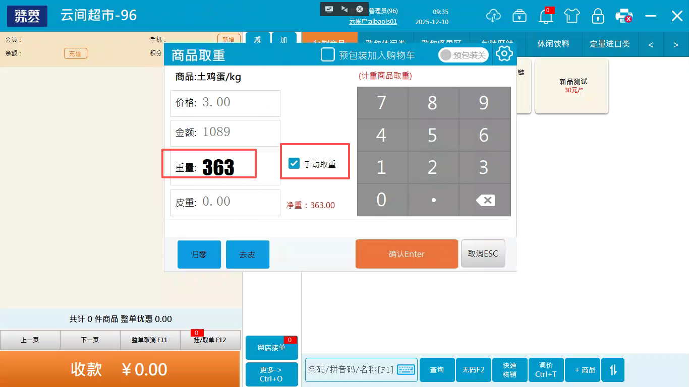 三、称重商品使用示例,称上放需要称重的商品(自动取重和手动取重)
