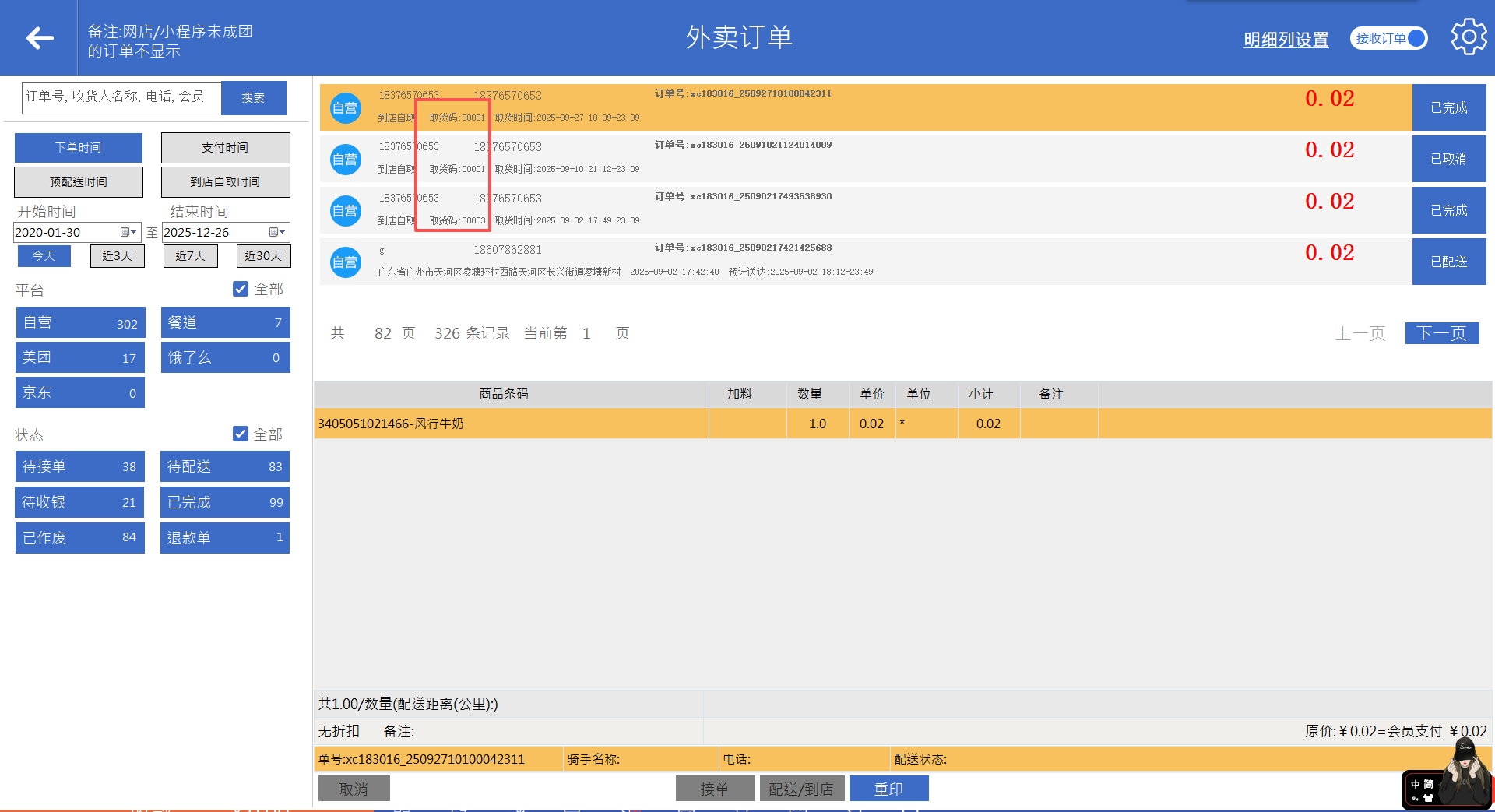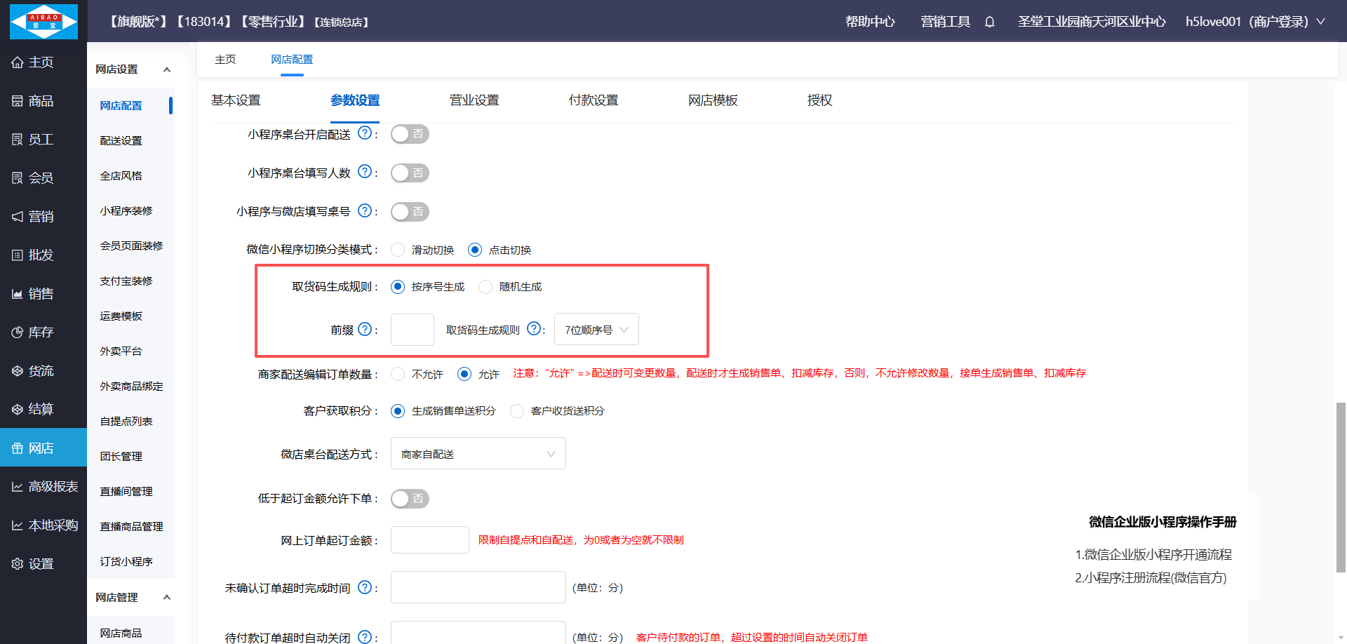 前提条件2:后台【网店配置】-【参数设置】-【外卖设置】取货码生成规则设置