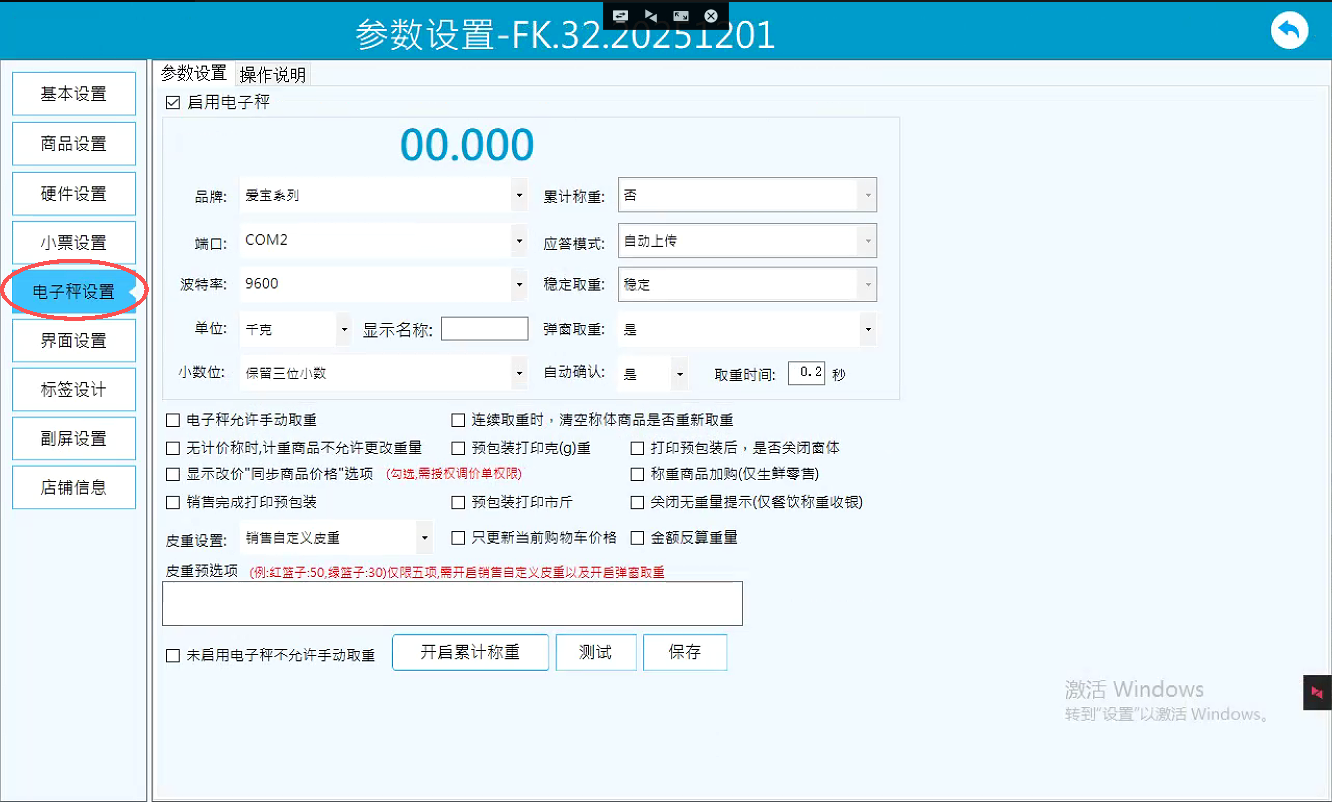 功能简介:收银一体称或拥有串口通讯功能的独立的电子计价称可通过串口与收银机连接起来,把计价称的重量传给收银系统,收银系统通过系统上对应不同品种商品的单价与获取到的重量算出金额,以便提高收银效率。