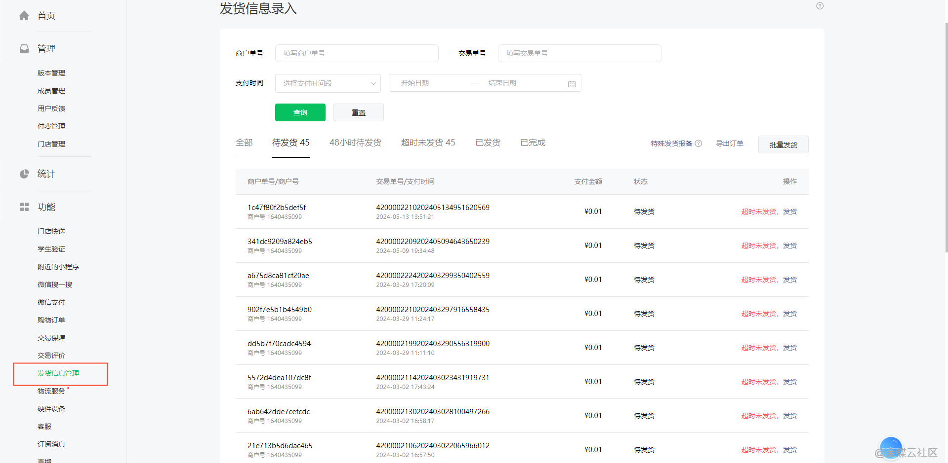 点击查看更多发货管理详情通知:https://developers.weixin.qq.com/miniprogram/product/jiaoyilei/fahuoguanligongneng.html