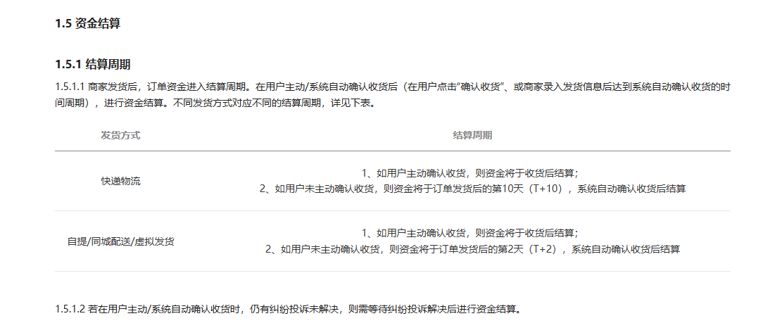 1、如用户主动确认收货,则资金将于收货次日结算;