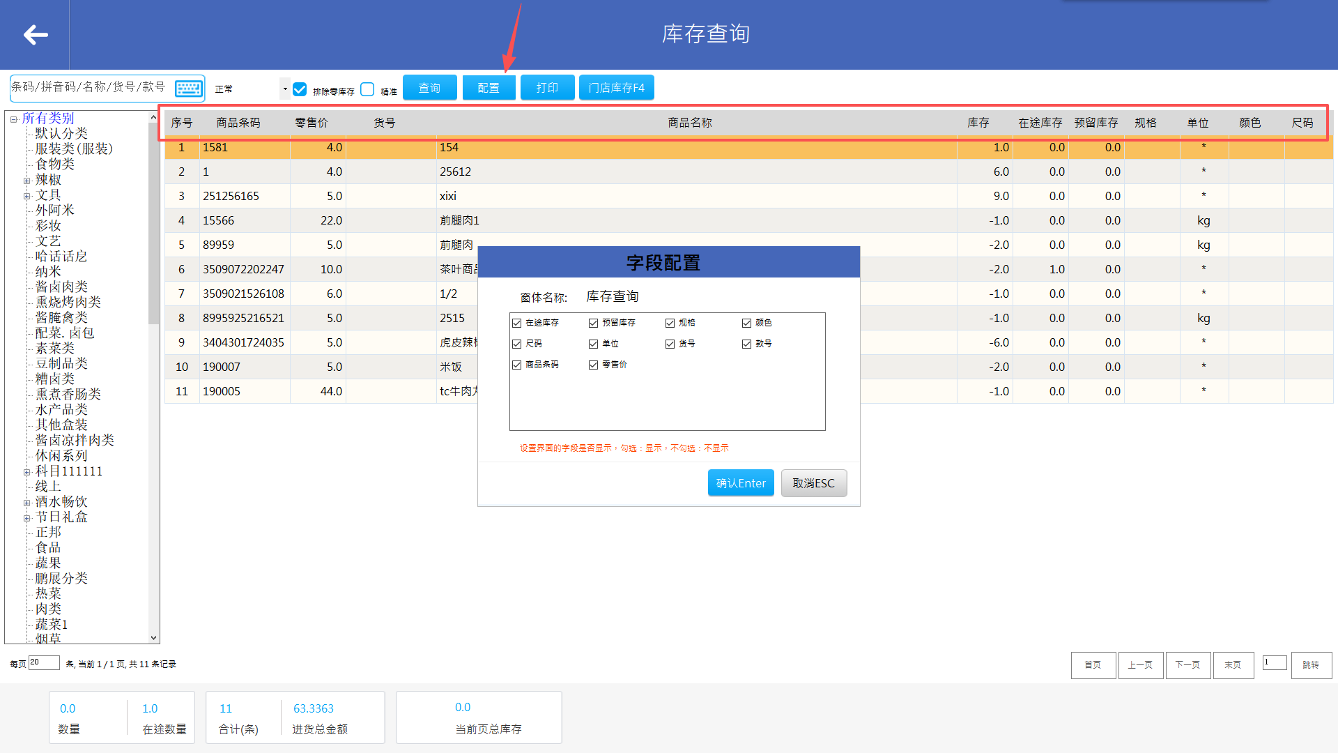 点击“配置”,可自定义列字段显示