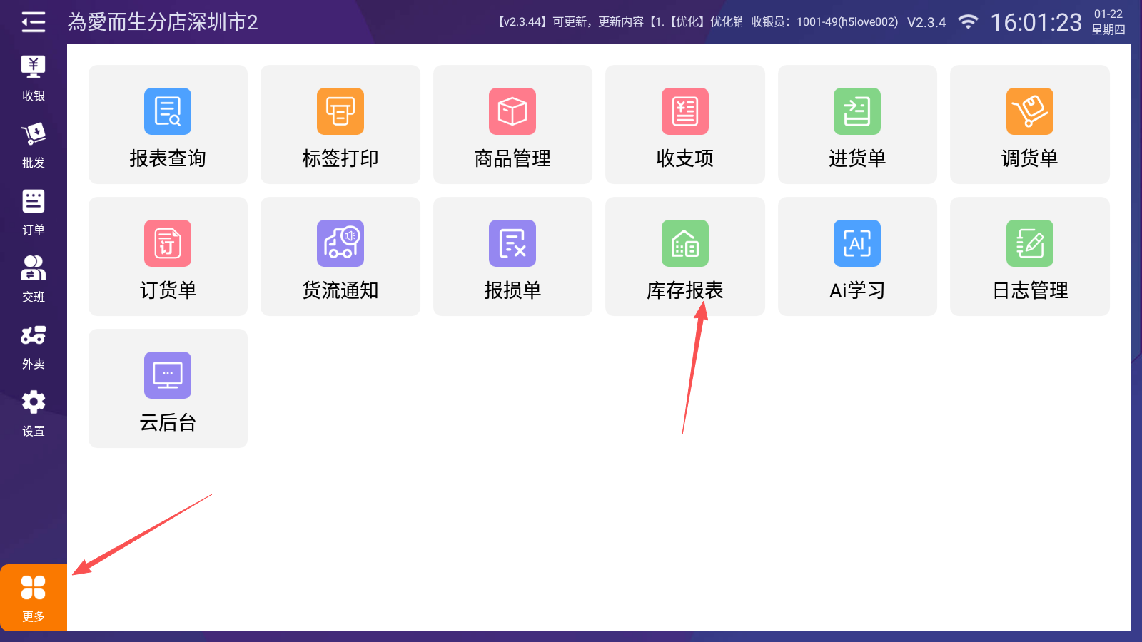 路径:【更多】-【库存报表】