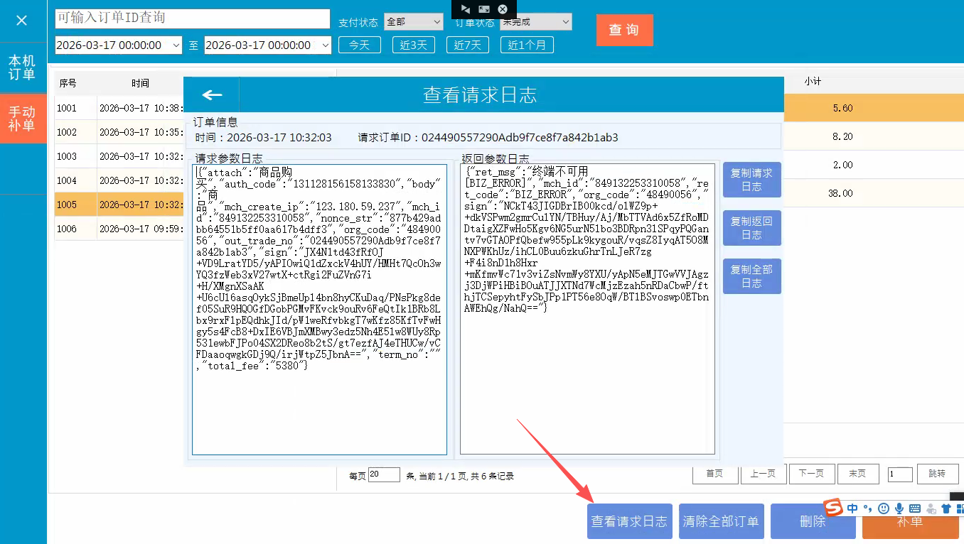 支付公司返回的提示,可以复制请求日志发送给支付公司咨询