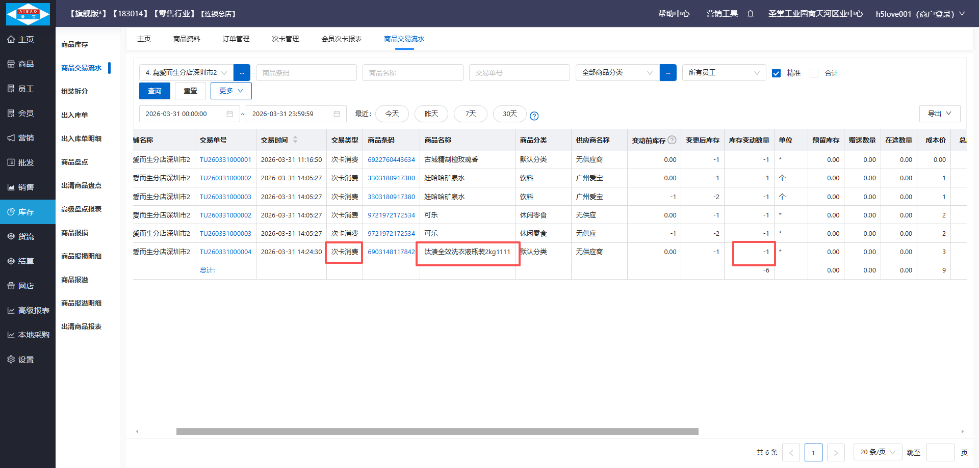Q6:如何查询会员的次卡消费记录?