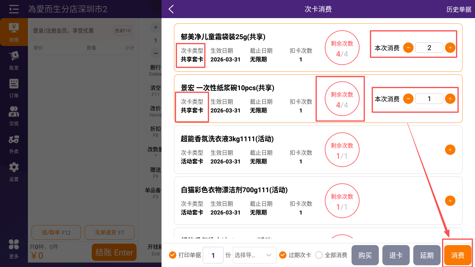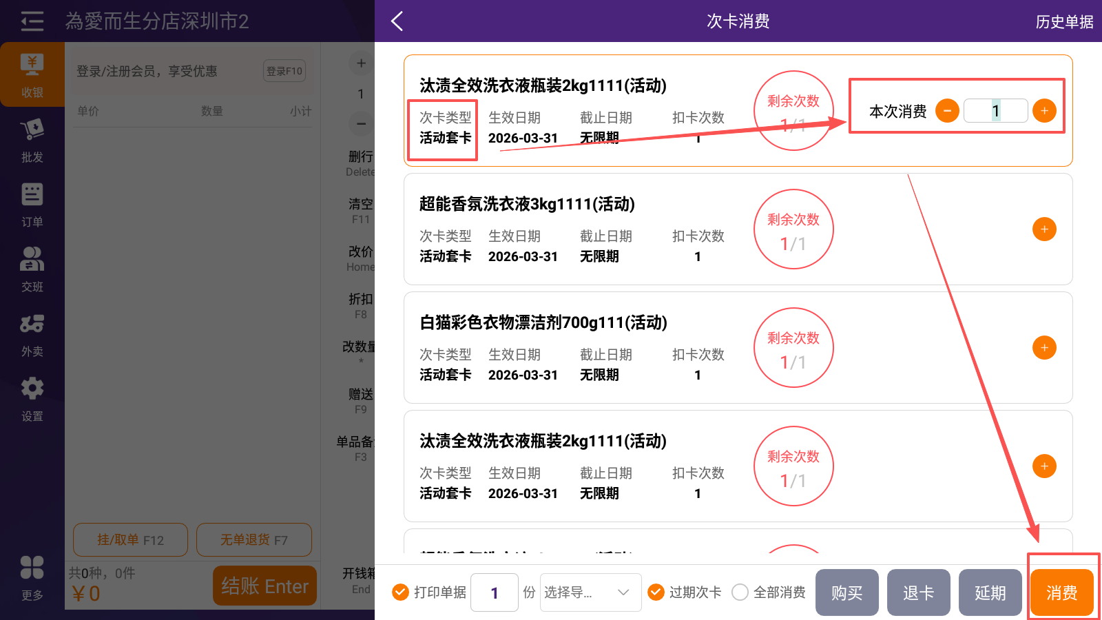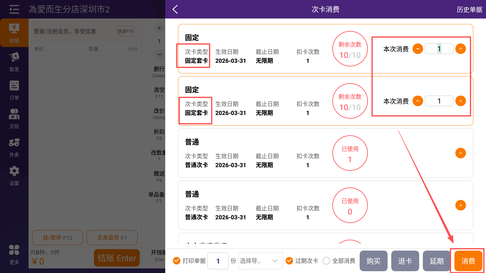 2.选择次卡并消费