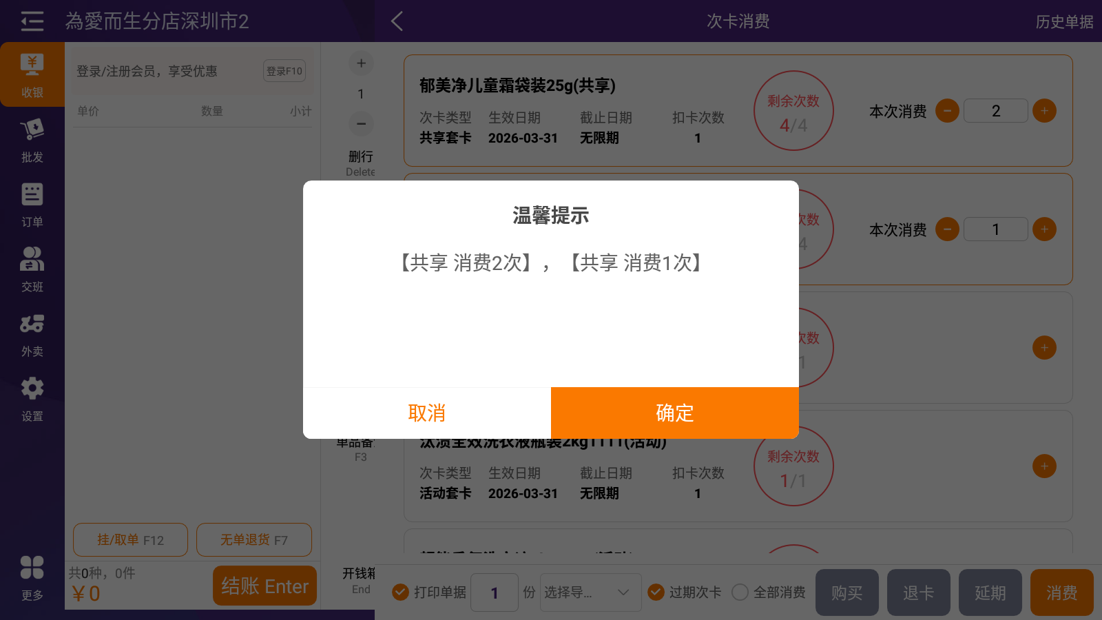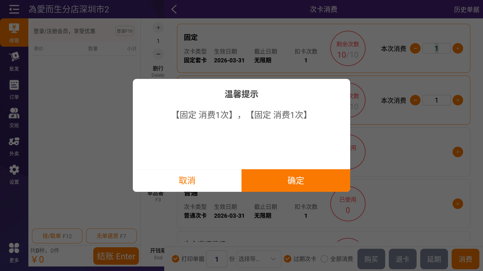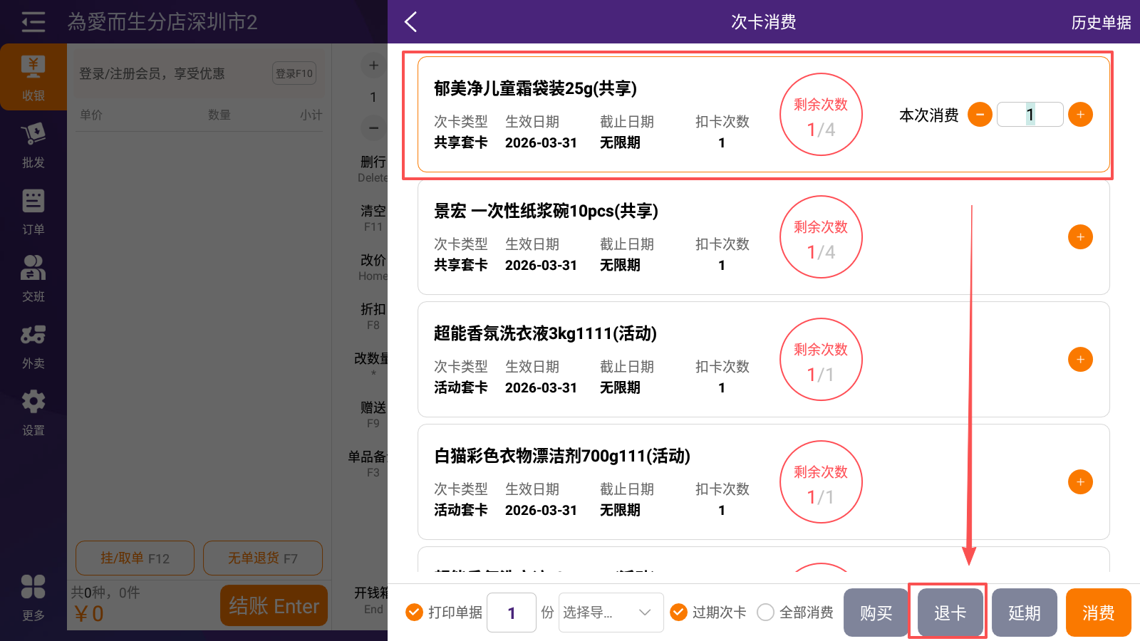 2.选择次卡并消费