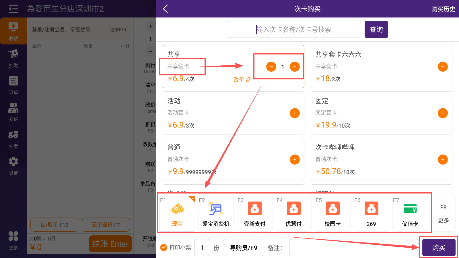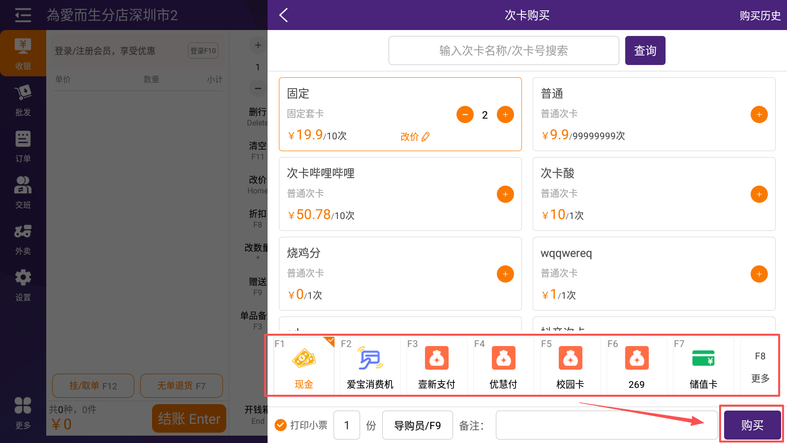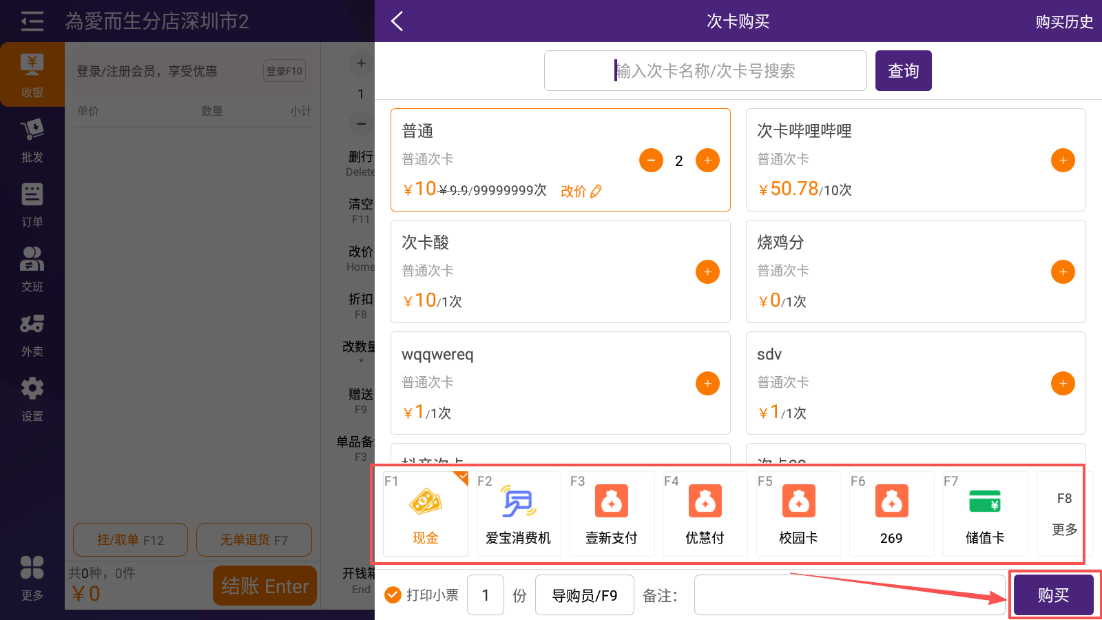 2.2 收银端购买普通次卡