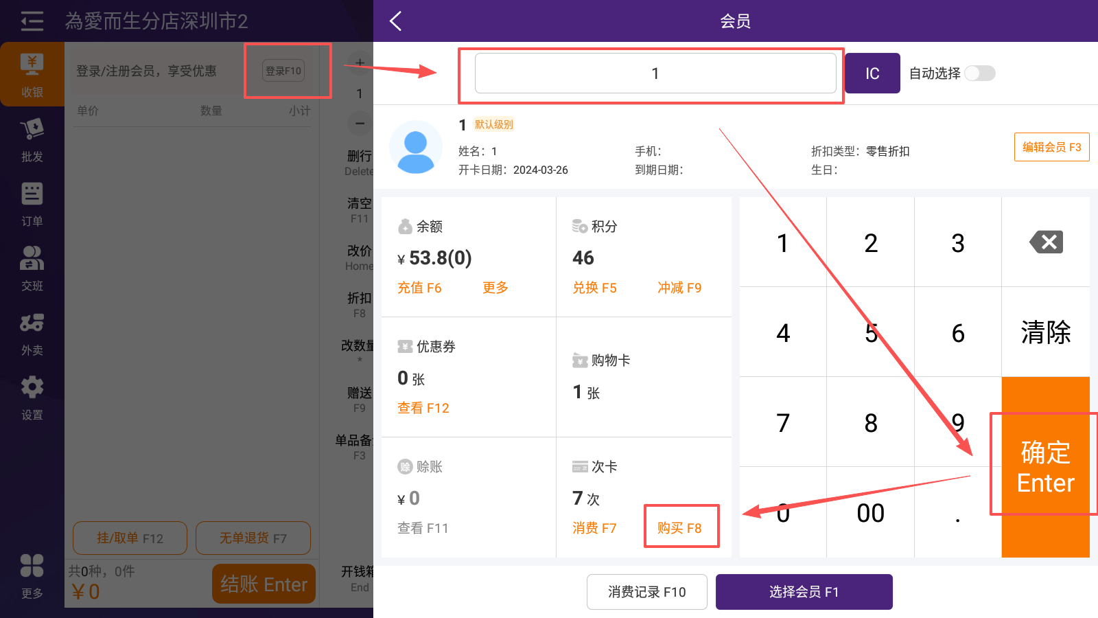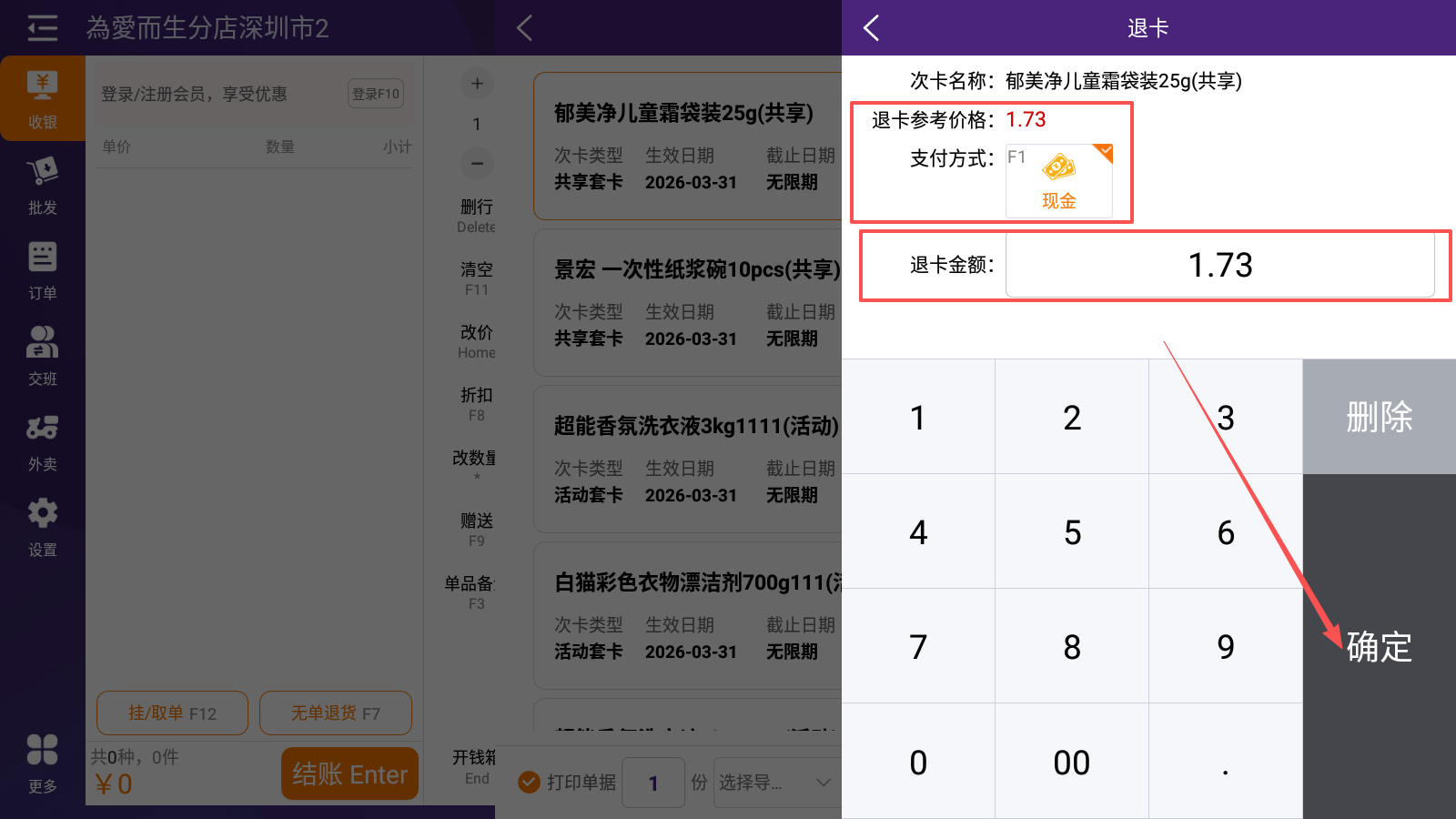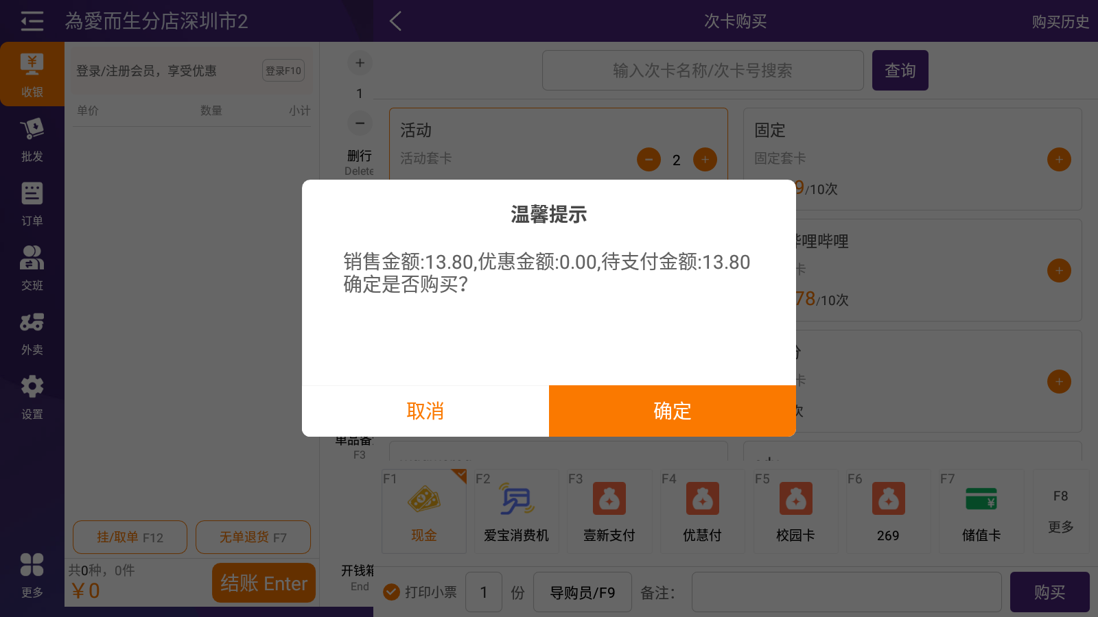 2.2 收银端购买普通次卡