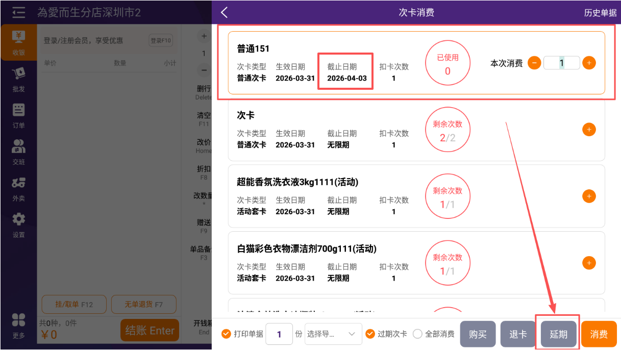 7.2 收银端次卡延期