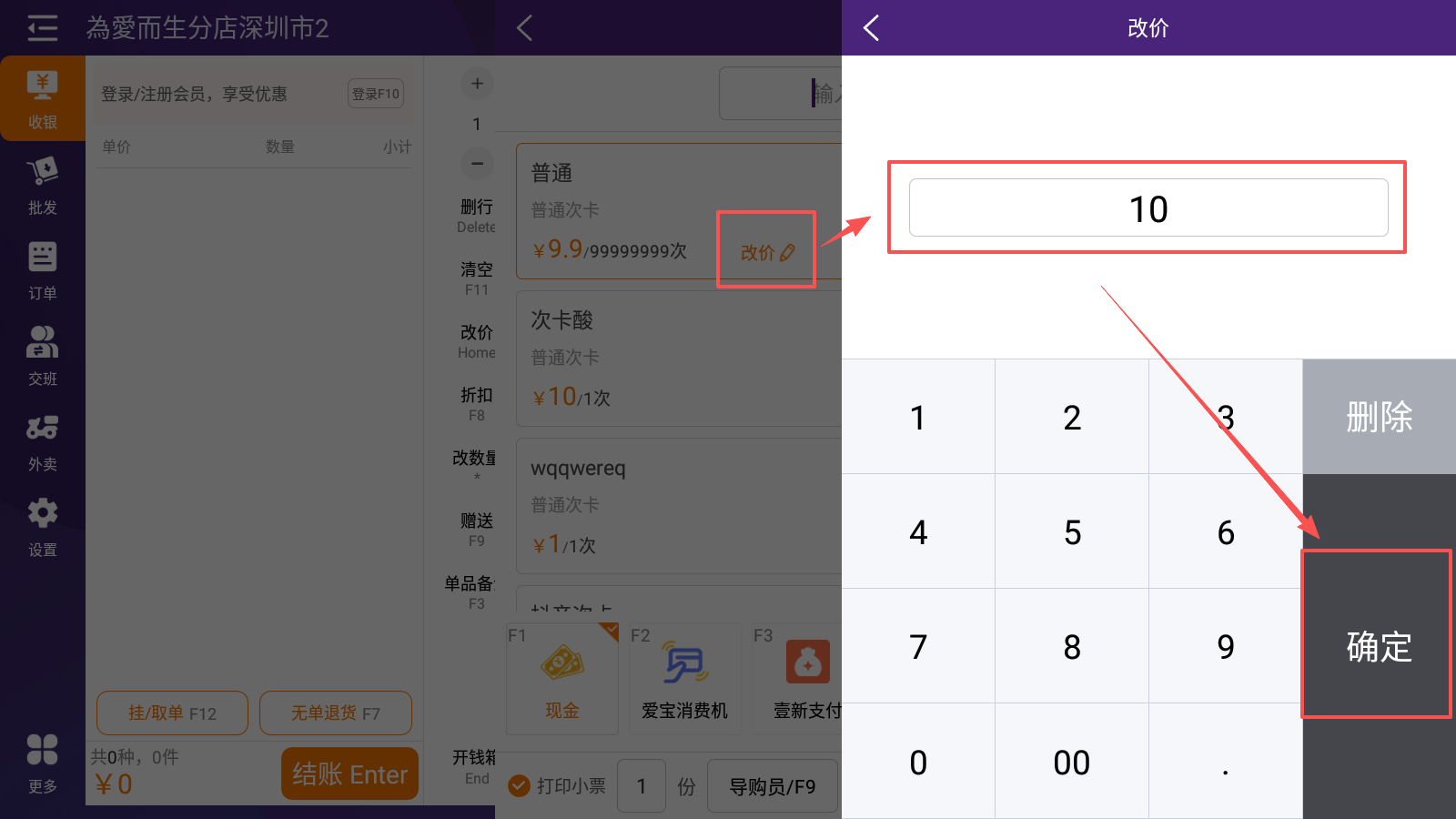 注:点击改价,可以修改次卡的购买价格