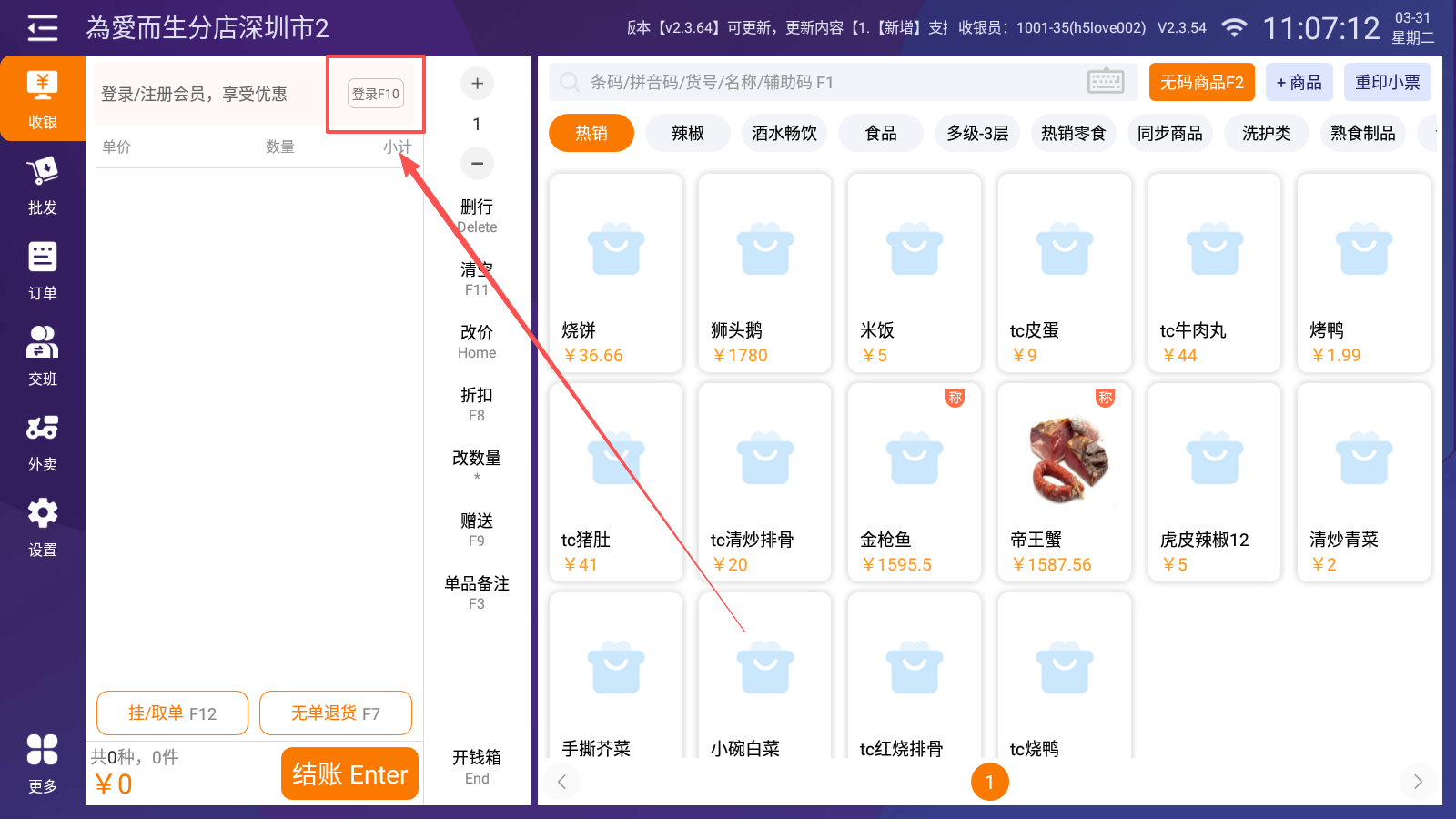 •登录收银端首页