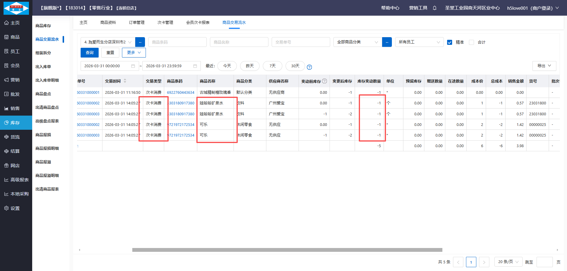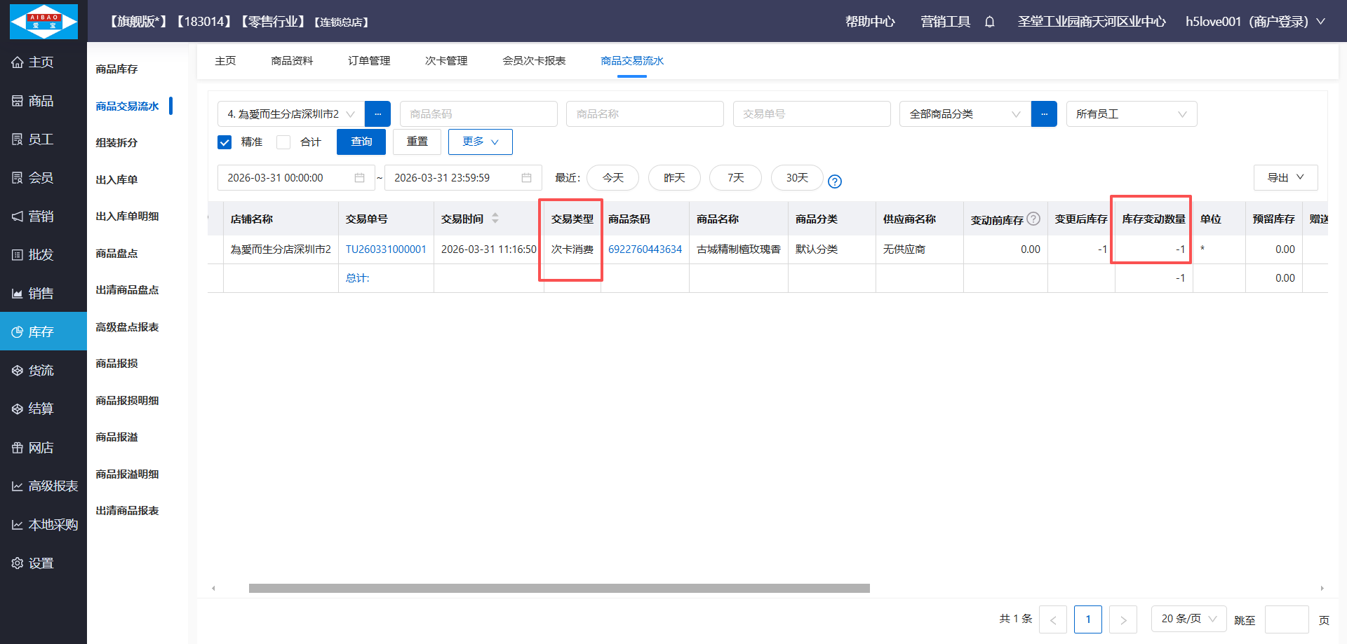 •扣减普通次卡消费商品的库存