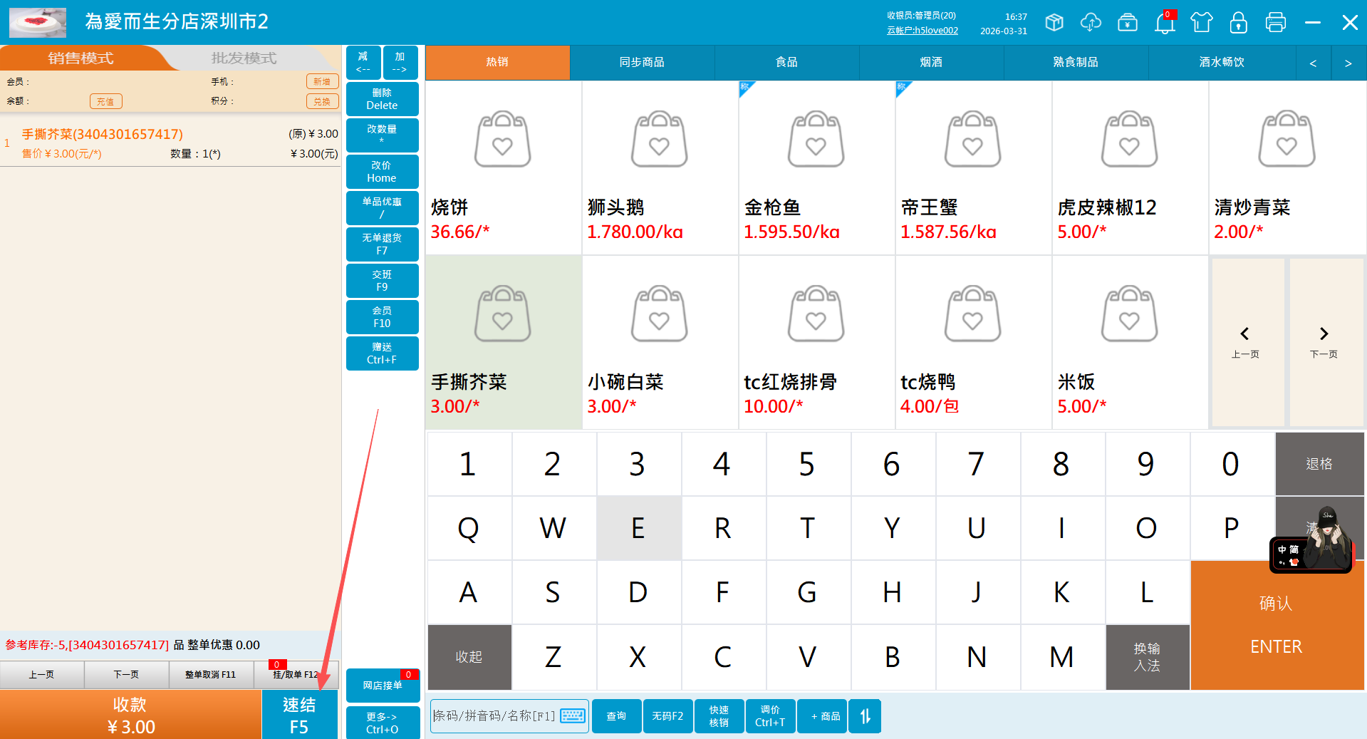 1.登录收银系统