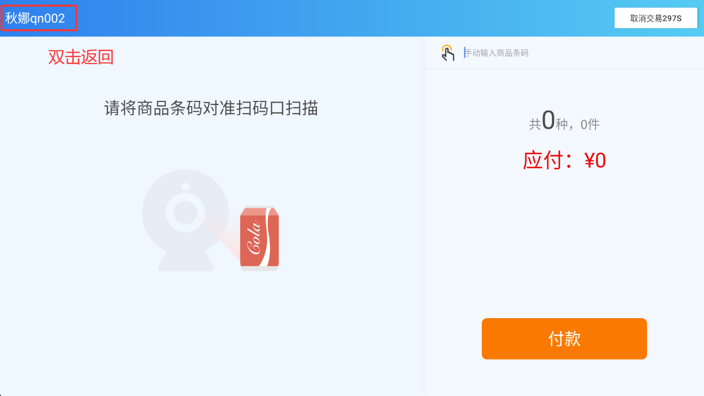 双击左上角店铺名称退出收银界面。