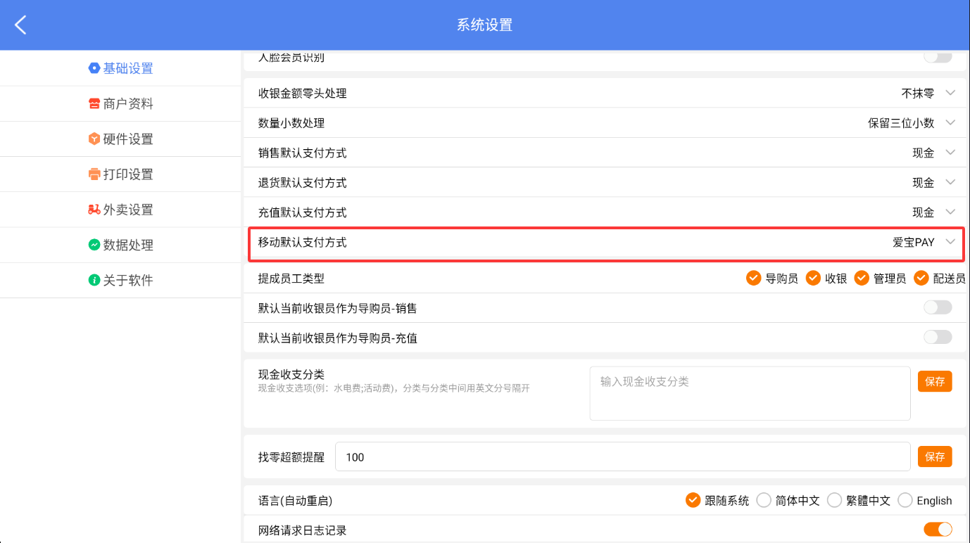 点击该选项,从弹出的列表中选择您希望设定的默认支付方式。