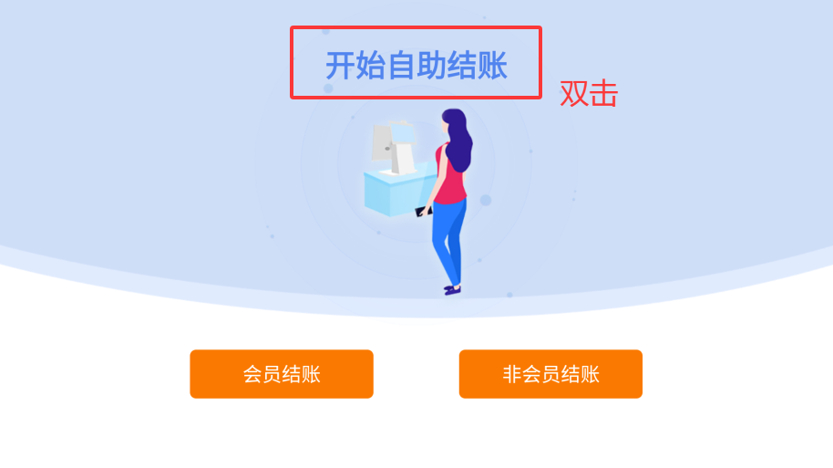 在系统主界面,找到并双击“开始自助结账”按钮。