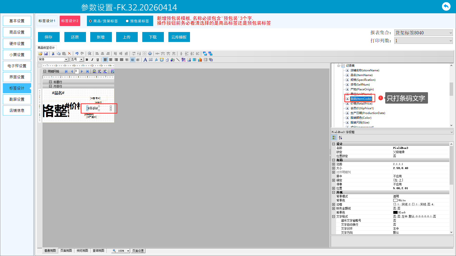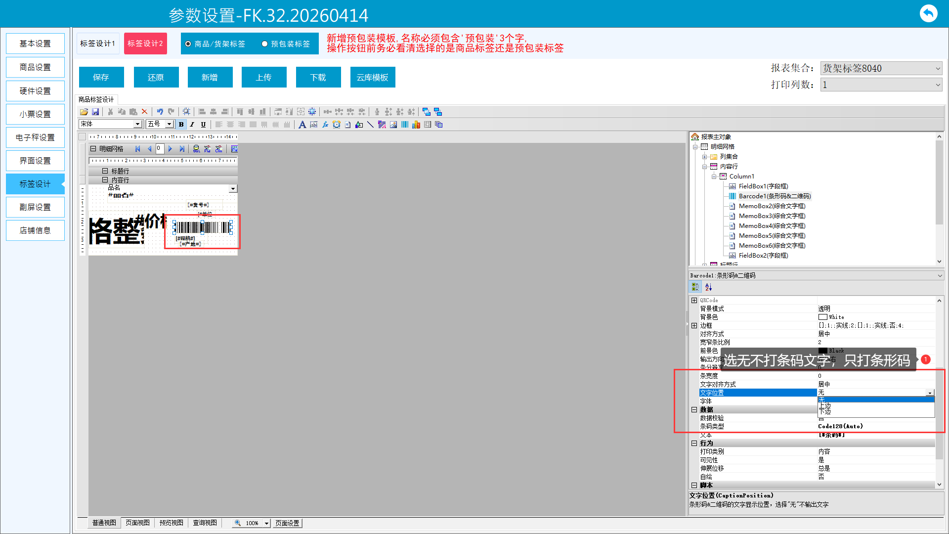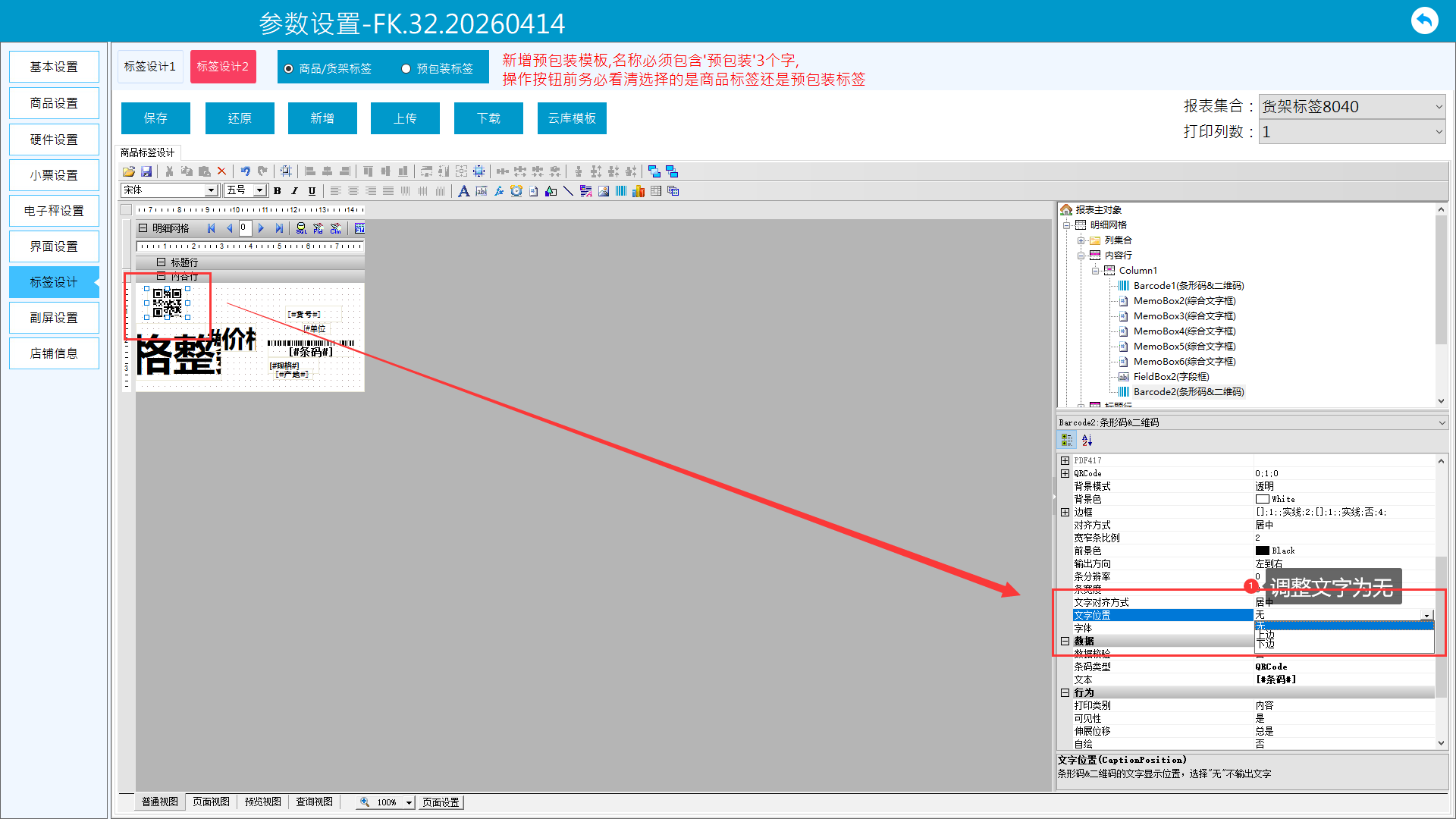 3、条码打印文字设置