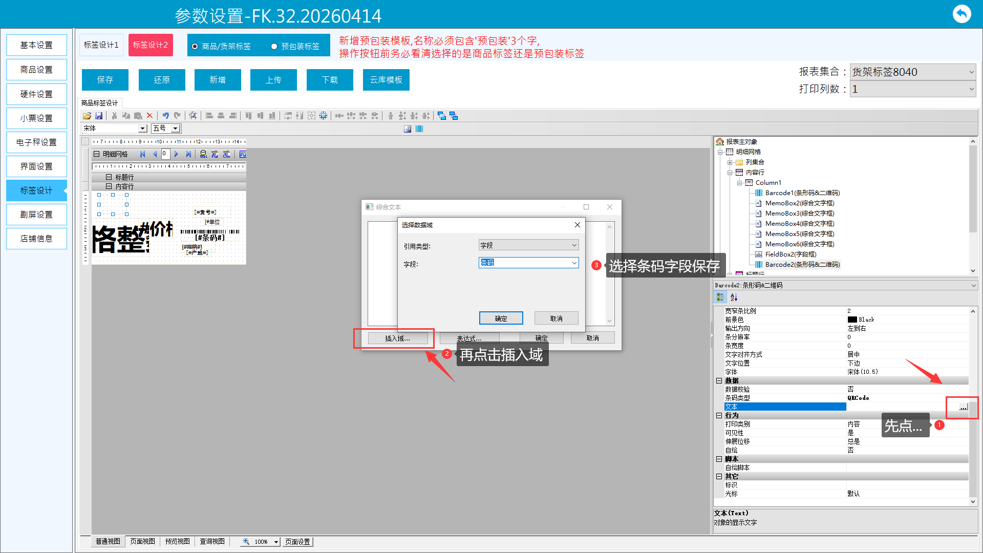 3.2只打条码数字不打条形。记录集里选择条码则只打印数字。