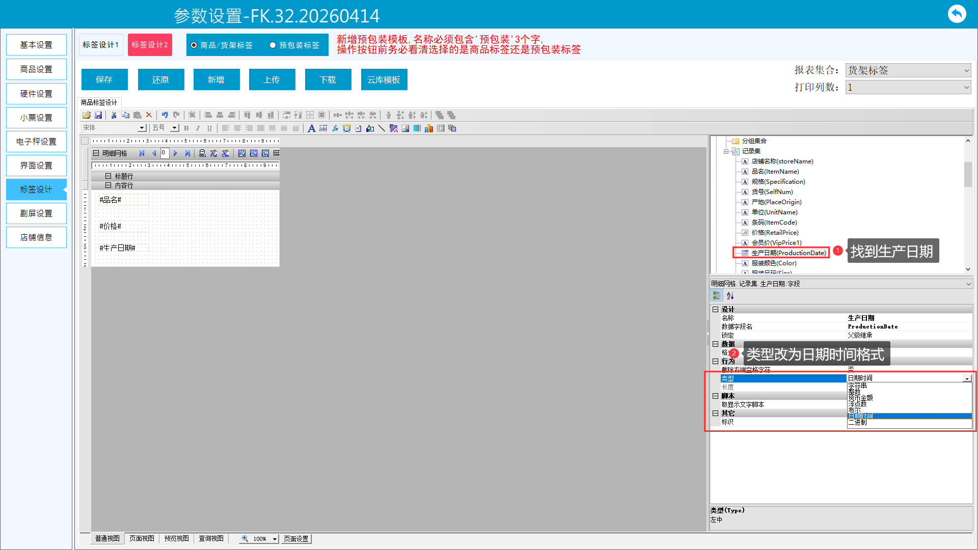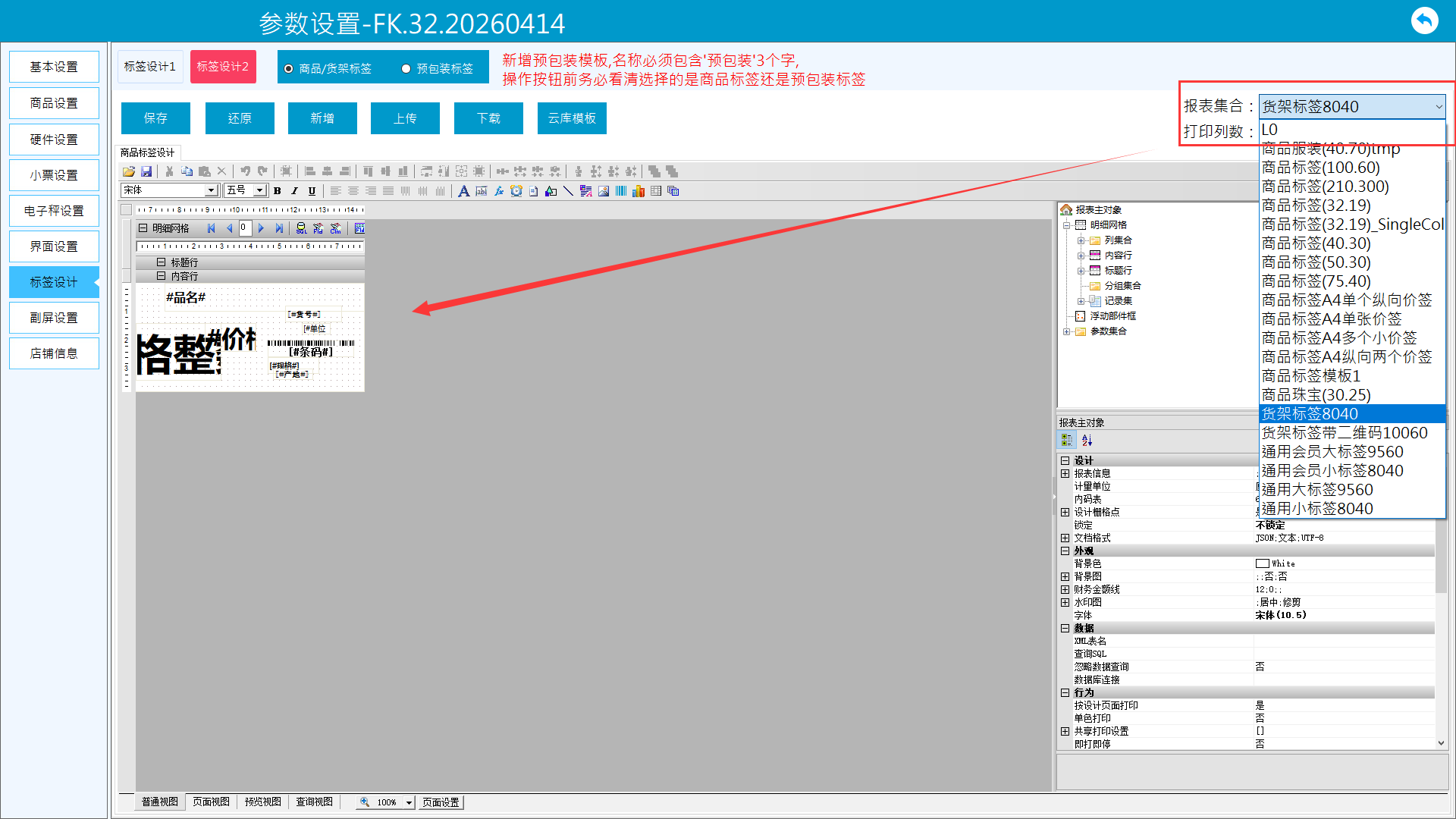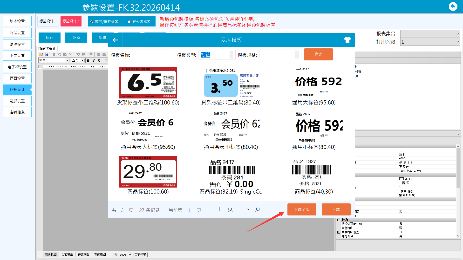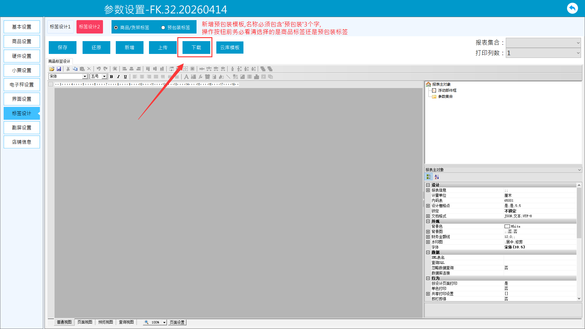 1、进入更多-参数设置-标签设计-标签设计2页面。当标签2无模板时,先下载云库模板。