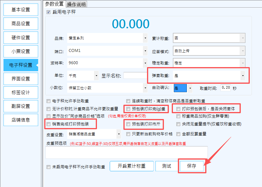 第三步:【电子秤设置】--勾选【启用电子秤】