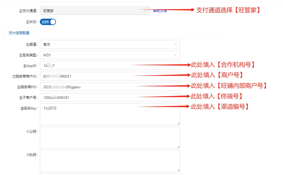 2.云后台【设置】-【支付管理】-【服务商支付】-【新建】,支付通道选择【旺管家】,如图所示: