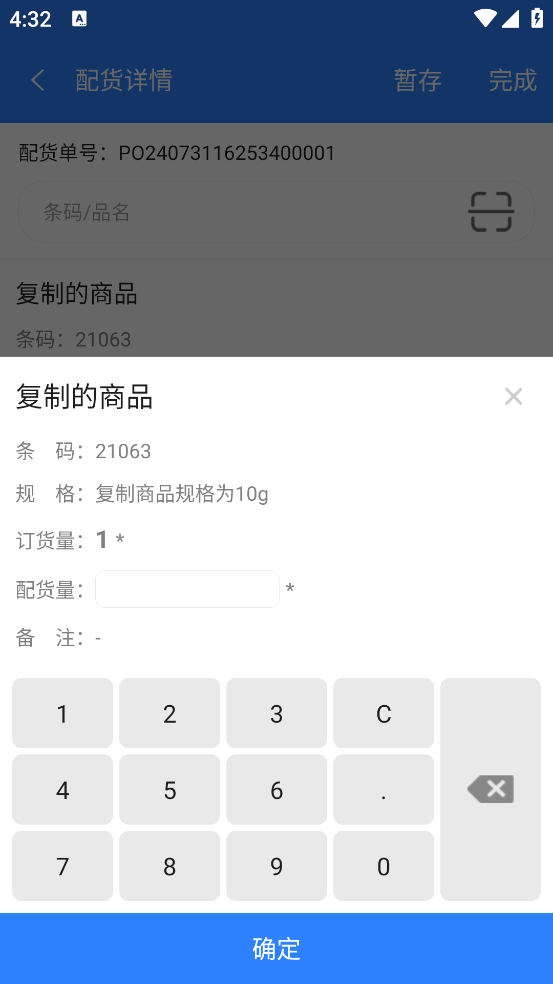 填写实际的配货量