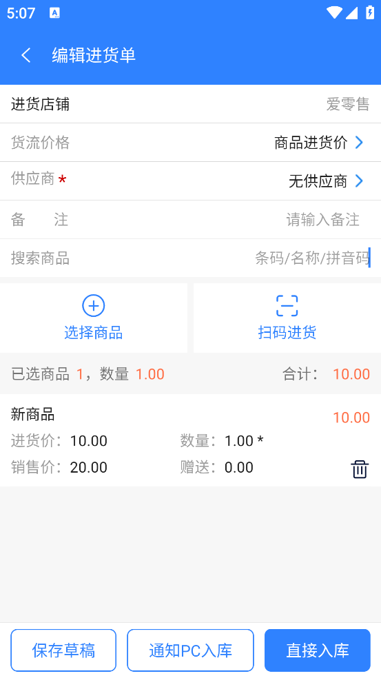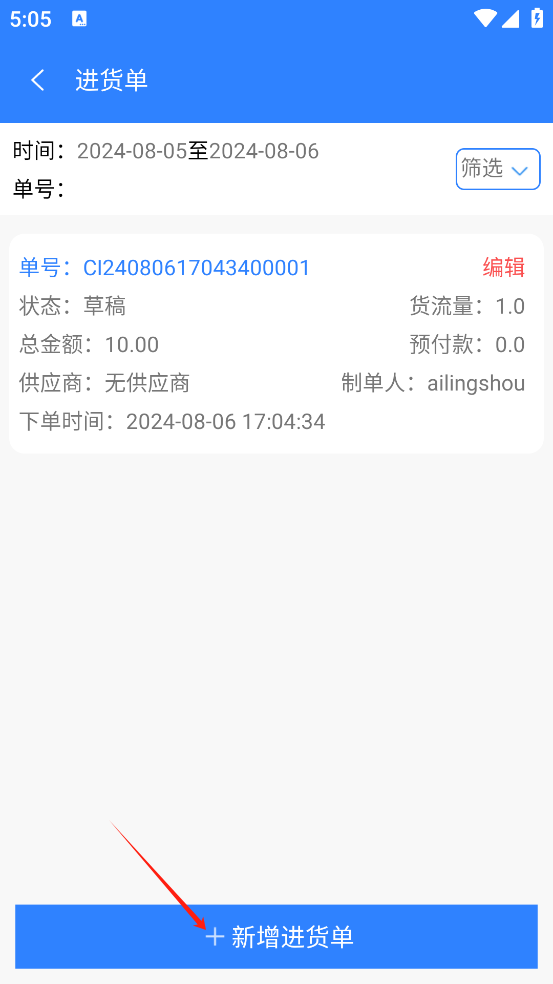 (1)可以新增进货单