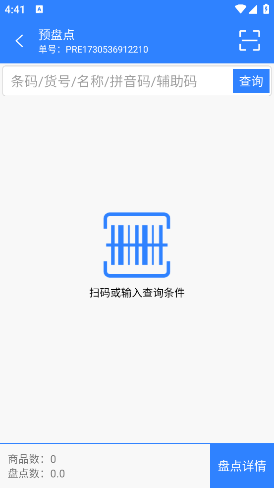 预盘点的作用:高级盘点的时候商品数量过多可能导致系统退出,预盘点的就可以把盘点数量保存在设备里面,退出后数据依然保存。