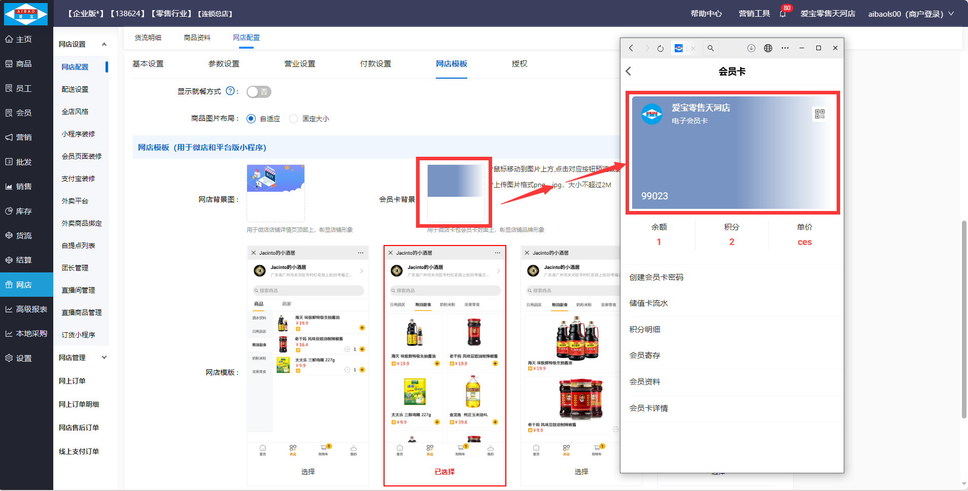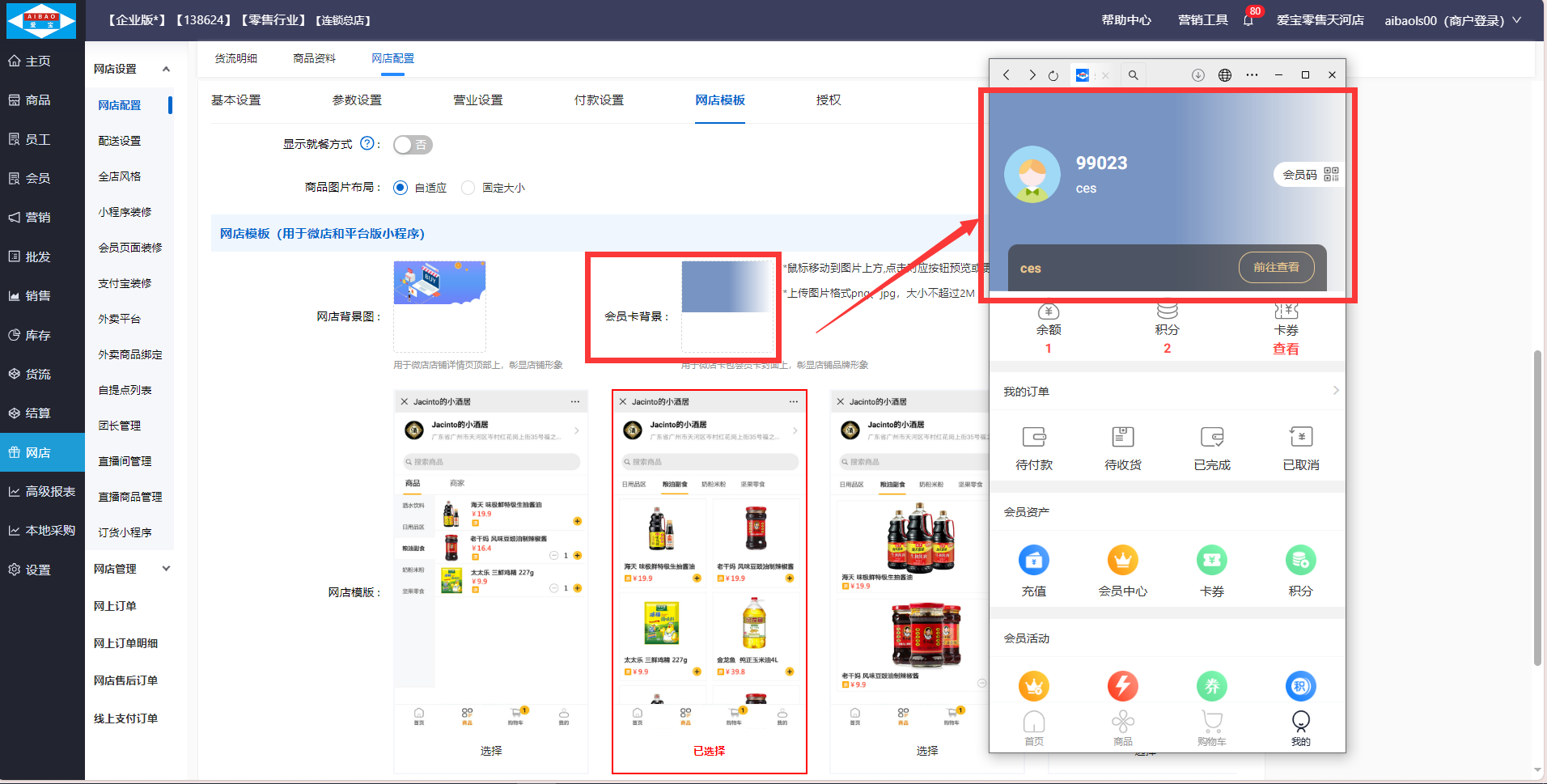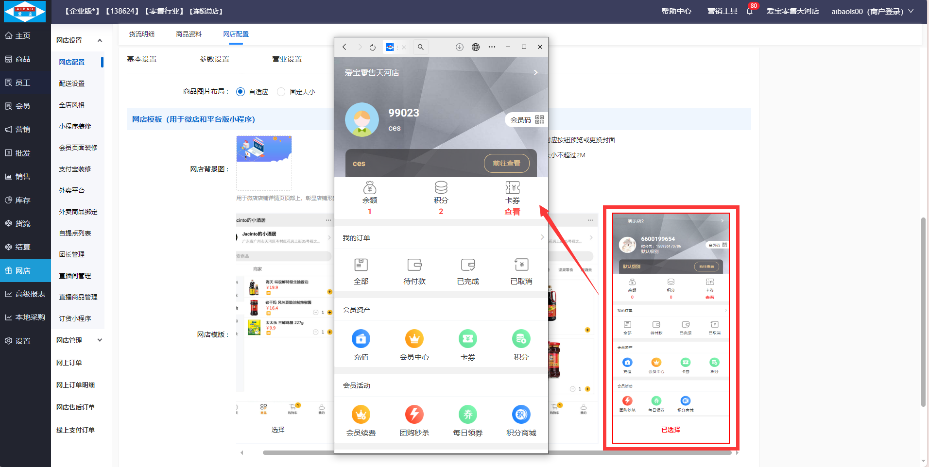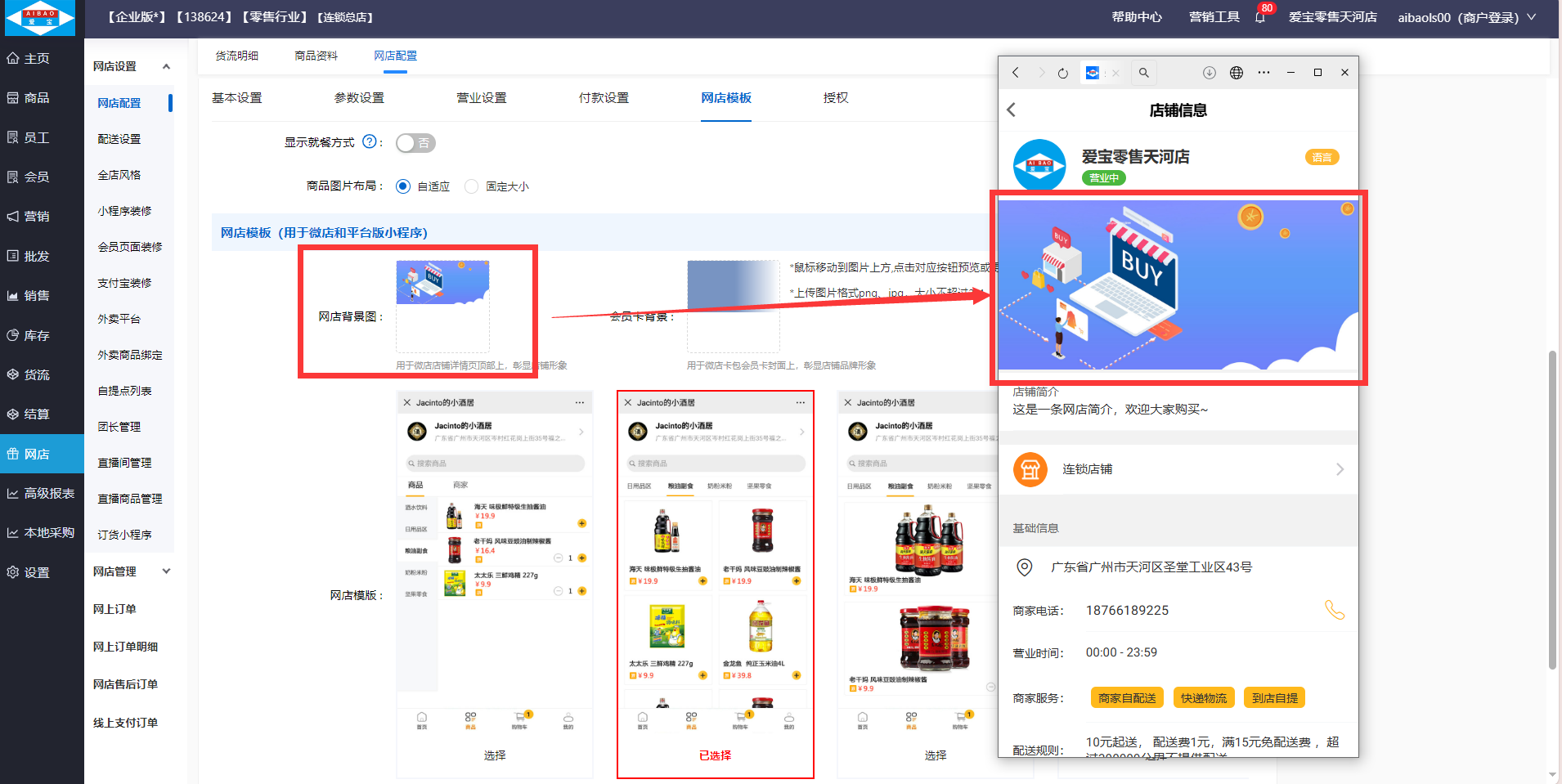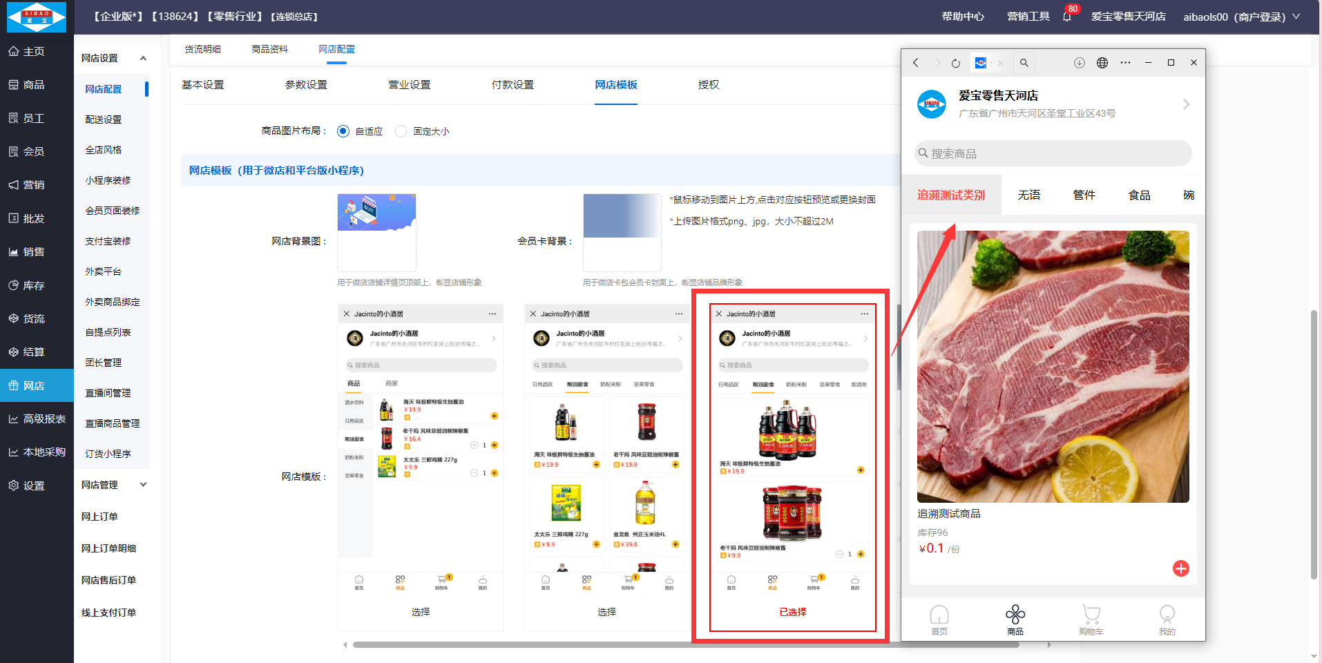 路径:【网店】-【网店设置】-【网店配置】-【网店模板】-网店模板(用于微店和平台版小程序)