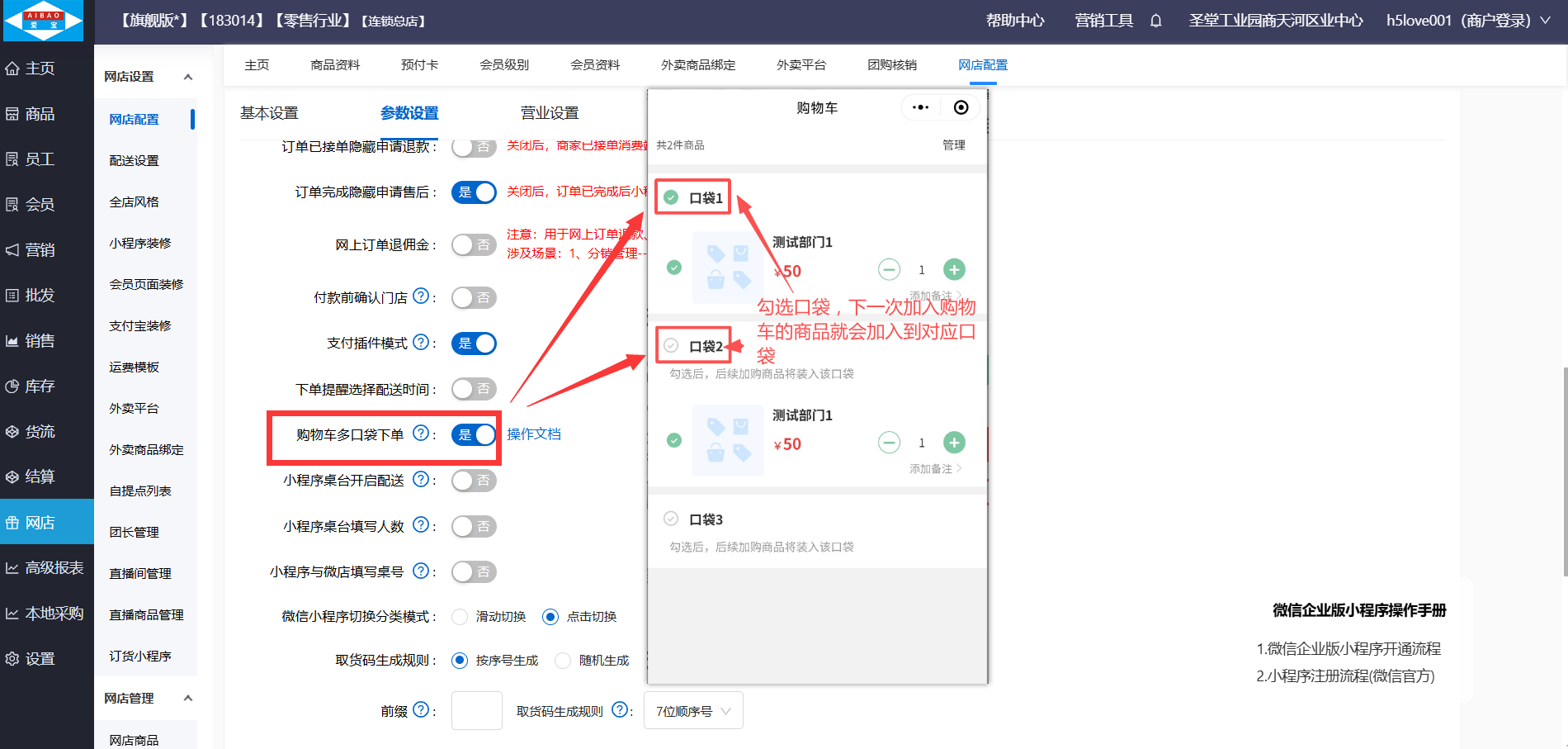 开启后,购物车显示多个口袋,更多详细说明点击查看:https://blog.aibaocloud.com/article/774.html