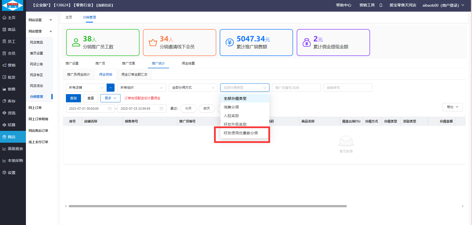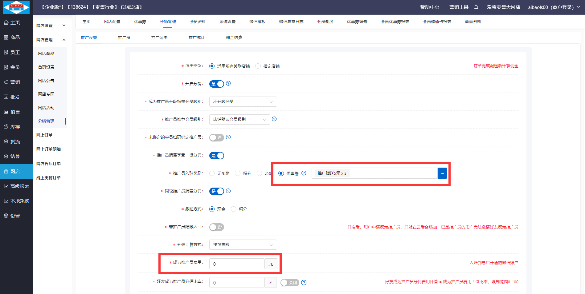 注:返佣请到【网店】-【网店管理】-【分销管理】页面设置激励方式。